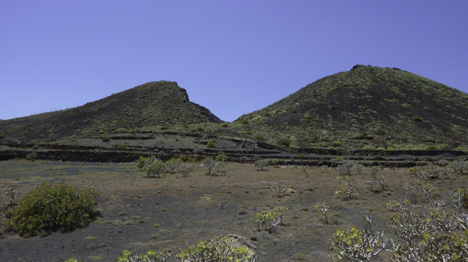 Diese landschaftlich sehr reizvolle Rundwanderung führt über Wirtschaftswege um den Vulkan La Quamada de Orzola, dem nördlichsten von fünf Vulkanen. Vorbei geht es an zahlreichen Weinfeldern, Gemüse aller Art, nicht bewirtschafteten Feldern und einer sehr üppigen Vegetation. Aufgrund der Höhe und dem hier wehenden Nordost-Passat findet man hier ein raueres Klima vor als auf der restlichen Insel. Anfang Dezember ergänzen Kartoffelpflanzen, Erbsen und einige Zucchinipflanzen das bereits satte Grün. Wie überall auf Lanzarote ist auch hier das Landschaftsbild geprägt durch Mauern aus aufgestapeltem Lavagestein. Diese dienen dem Schutz vor den Winden, aber auch als Wasserspeicher, da das Gestein den vorbeiziehenden Wolken Feuchtigkeit entzieht.