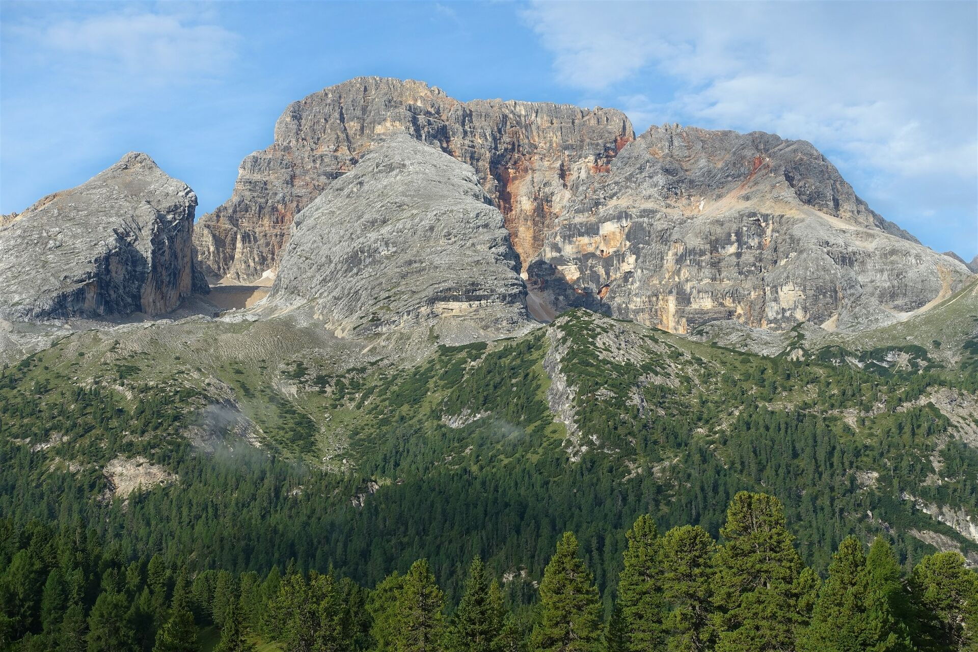 Dolomiten-Höhenweg 3 - von links der 2469 m hohe Sasso di Bosconero der 2430 m hohe Sasso di Toanella und der 2412 m hohe Rocchetta Alta