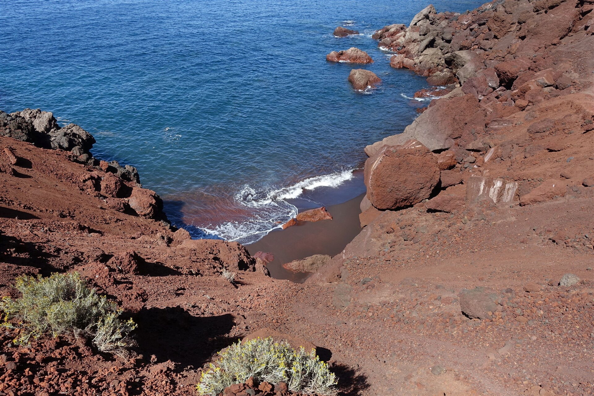 El Hierro - kleiner rotbrauner Strand auf der Wanderung zur Playa de Los Cardillos