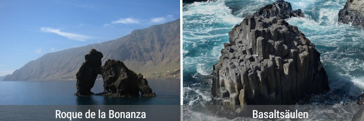 In der Bucht von Las Playas erhebt sich der Roque de la Bonanza aus dem Meer, eine Felsnadel, die 200 m vom Meeresboden aufragt und ca. 15 m aus dem Wasser herausschaut. Dies ist eines der beliebtesten Motive für Erinnerungsfotos, Ansichtskarten und Reiseführer. Der Roque de la Bonanza gehört zu den Wahrzeichen der Insel und ist wegen seiner interessanten Form und einzigartigen Schönheit eines der meistfotografierten Objekte. Mit genügend Fantasie erkennt der Betrachter einen Bären, der mit einem Löwen kämpft. | GPS-Koordinaten 27.729243 -17.941351 |