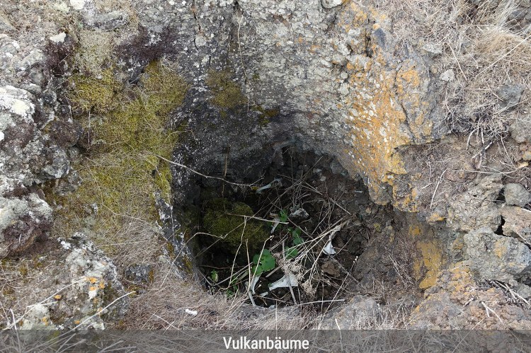 Ja, eigentlich ist es nur ein Loch im Boden und außerdem ist es auch nur sehr schwer zu finden. Also warum diese Exkursion? Die Fundstellen befinden sich nördlich von San Andrés, auf der zentralen Hochebene gelegen, westlich unterhalb des 1.176 m hohen Vulkans Montaña del Jablito. Wir suchen nach 80–100 cm großen runden Löchern im Boden, diese befinden sich 3–4 m und 10–15 m links neben der Piste. Der Vulkan steht auf der rechten Seite, wir sind von San Andrés gekommen. Obwohl an dieser Stelle kein Zaun vorhanden ist, betritt man ein Privatgrundstück, das jederzeit verlassen werden muss, wenn der Eigentümer darauf hinweist. Vor ca. 2.500 Jahren ereignete sich ein kleiner Vulkanausbruch, bei dem Lava um die dort stehenden Bäume herumfloss. Der Lavastrom erstarrte, noch bevor die Bäume vollständig verbrannten. Die Bäume gibt es schon lange nicht mehr. Was blieb, sind die 80–100 cm großen kreisrunden Löcher. Beim genaueren Betrachten ist sogar noch der Abdruck der Rinde zu erkennen – wie ich meine, eine geologische Sehenswürdigkeit. | GPS-Koordinaten 27.774546 ‑17.955058 | siehe Wanderung 30* |