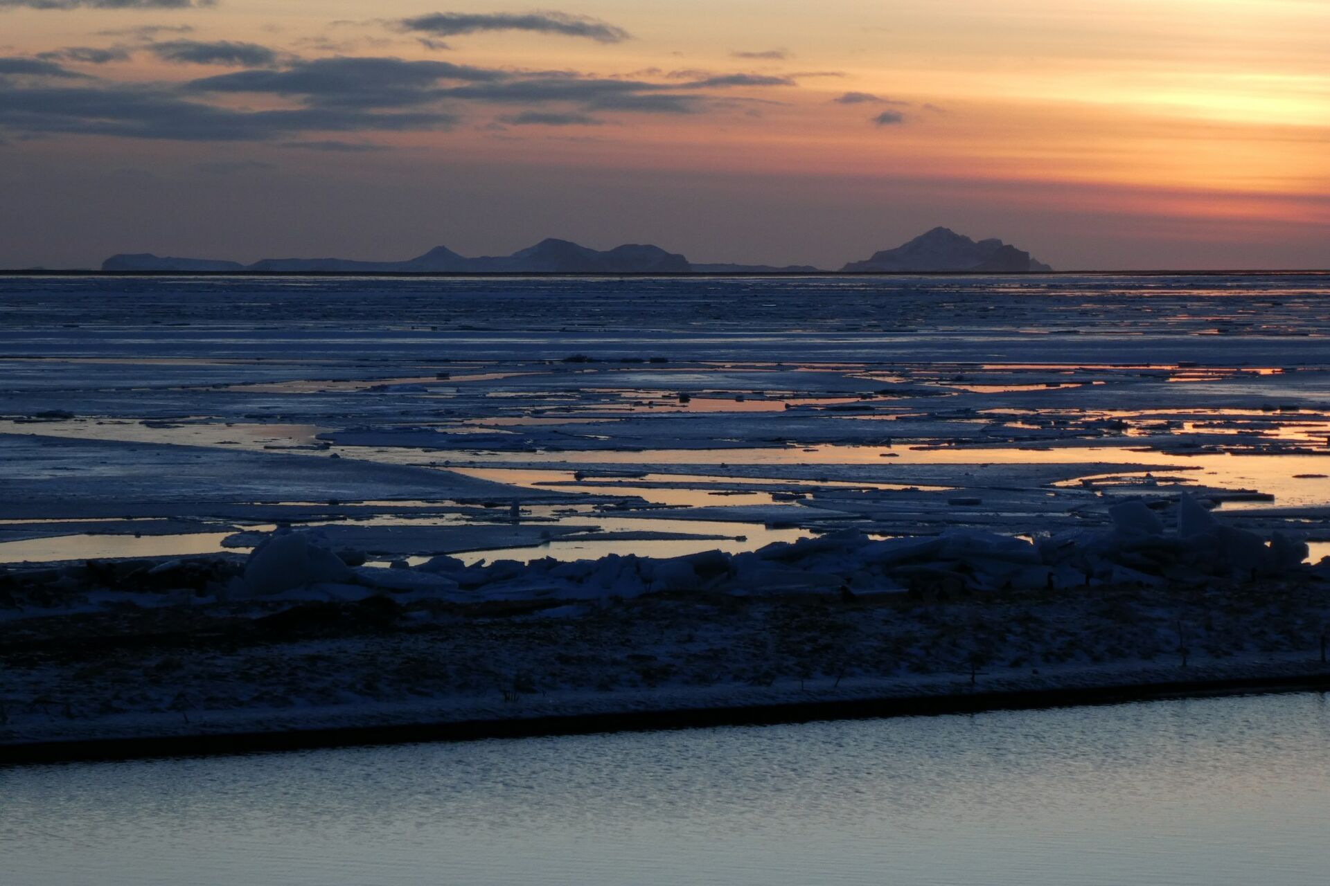 Island – Sonnenuntergang bei den Afternoon Cottages.