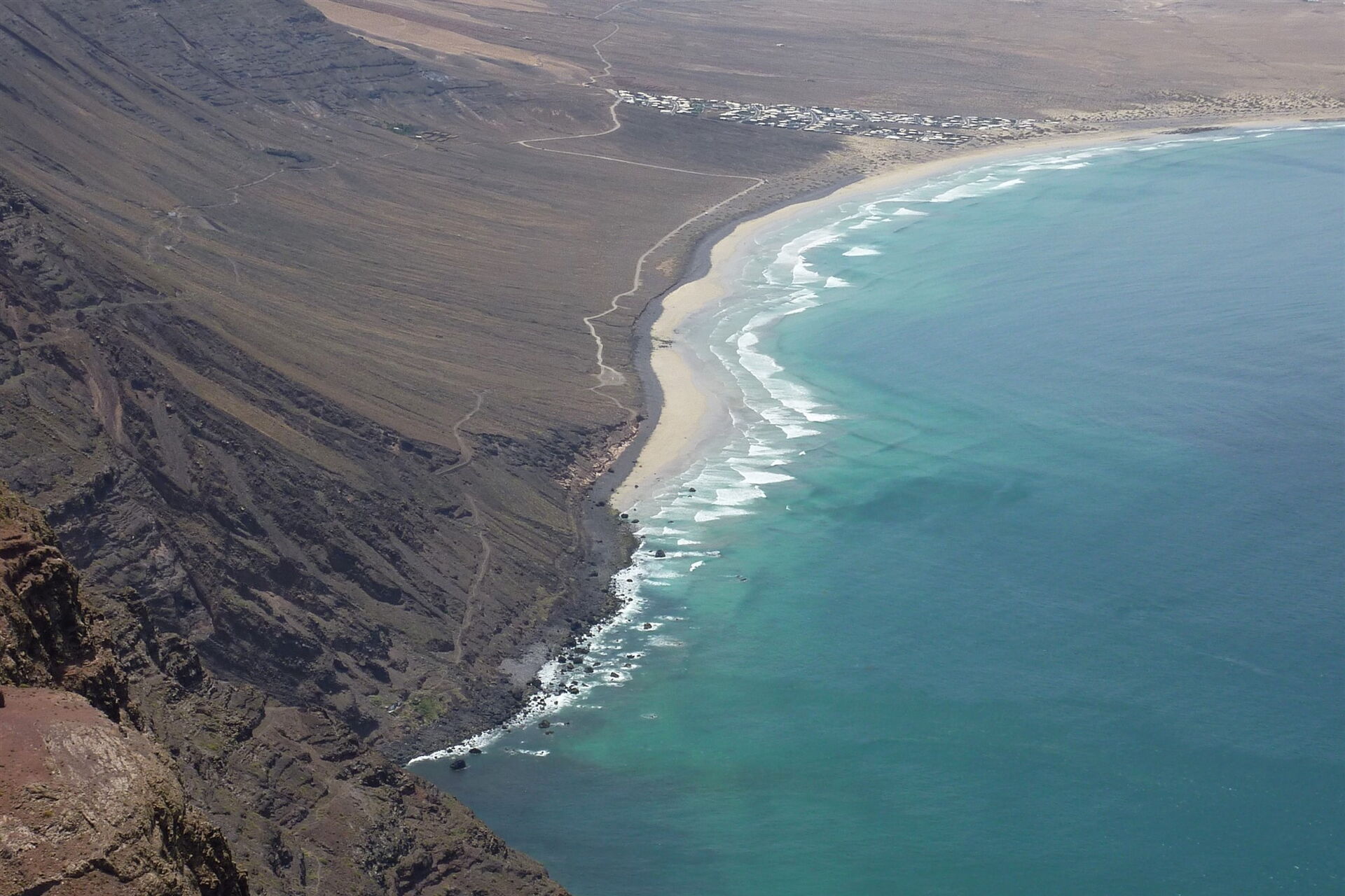 Lanzarote - die Playa de La Cocina vom Gipfel der Montana Amarilla