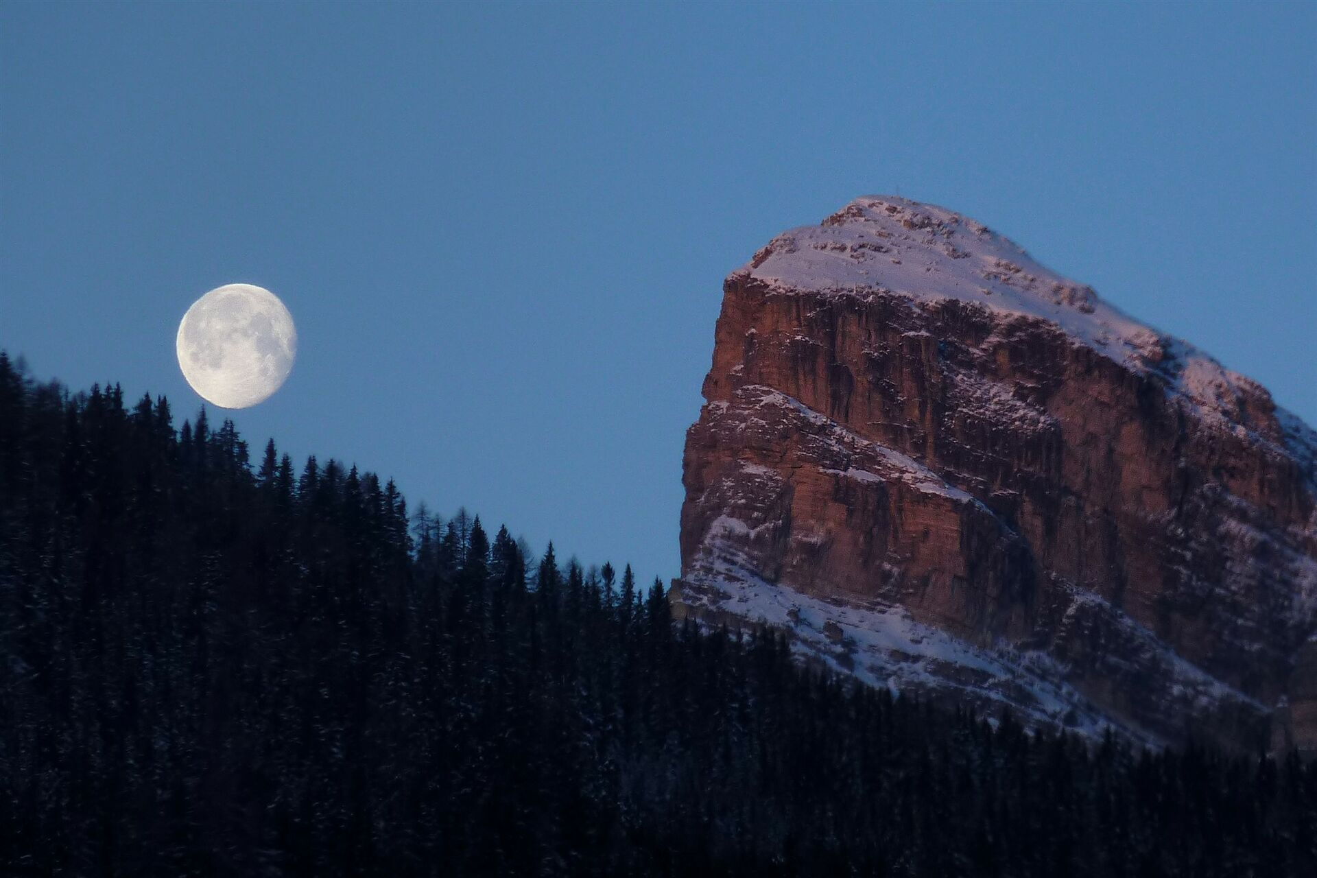 Variantenabfahrten - untergehender Mond triff auf Sonnenaufgang am Sassongher 2665 m