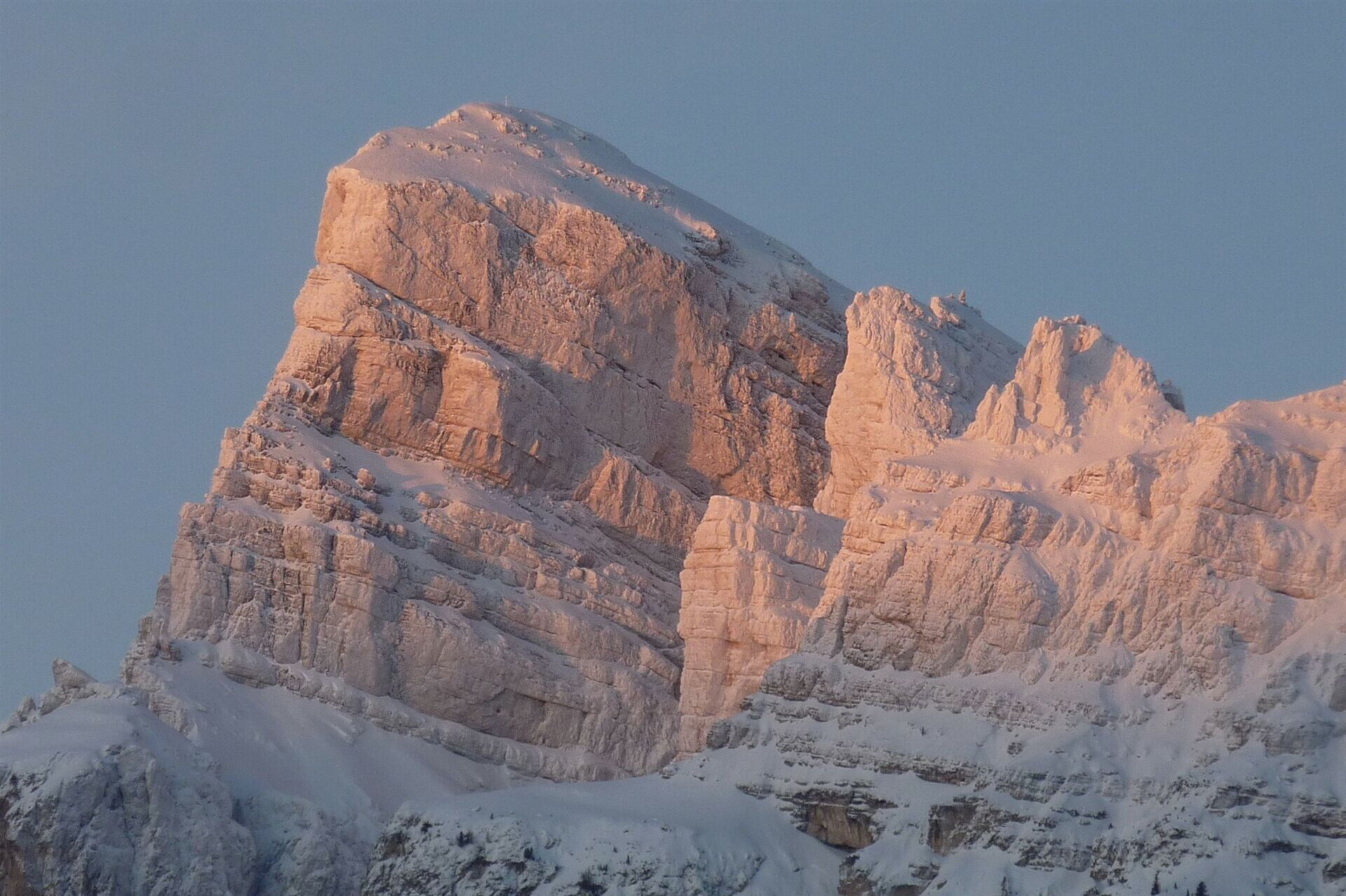 Variantenabfahrten - der Sassongher im rosa Winterkleid
