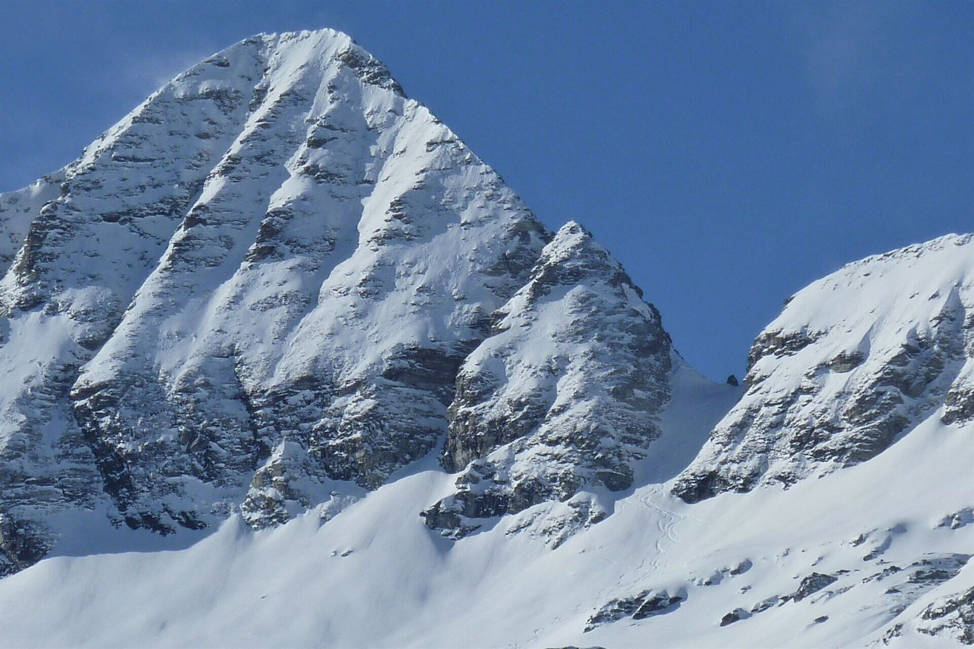 Variantenabfahrten - der 3064 m hohe Piz dles Cunturines, der höchste Berg der Fanesgruppe