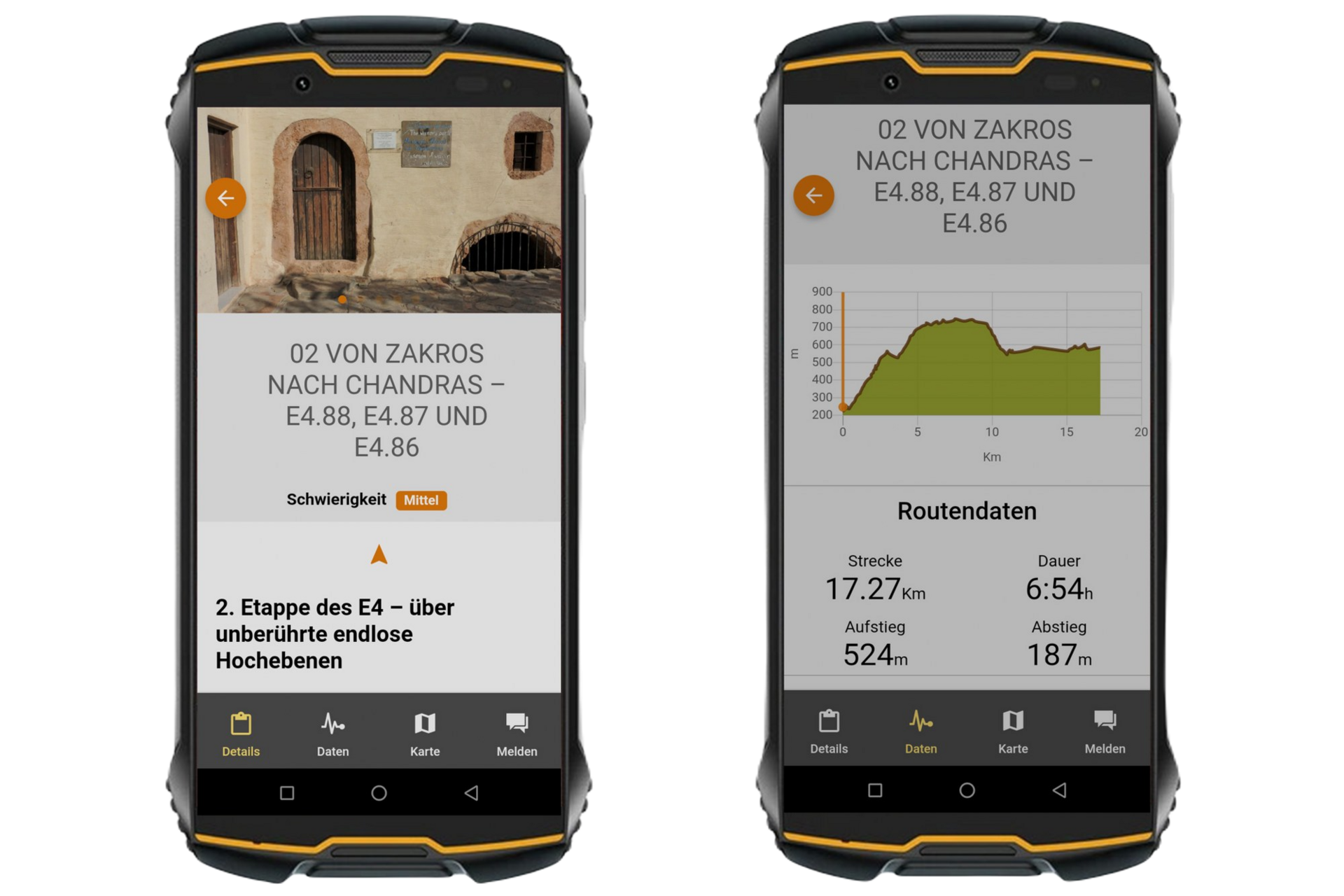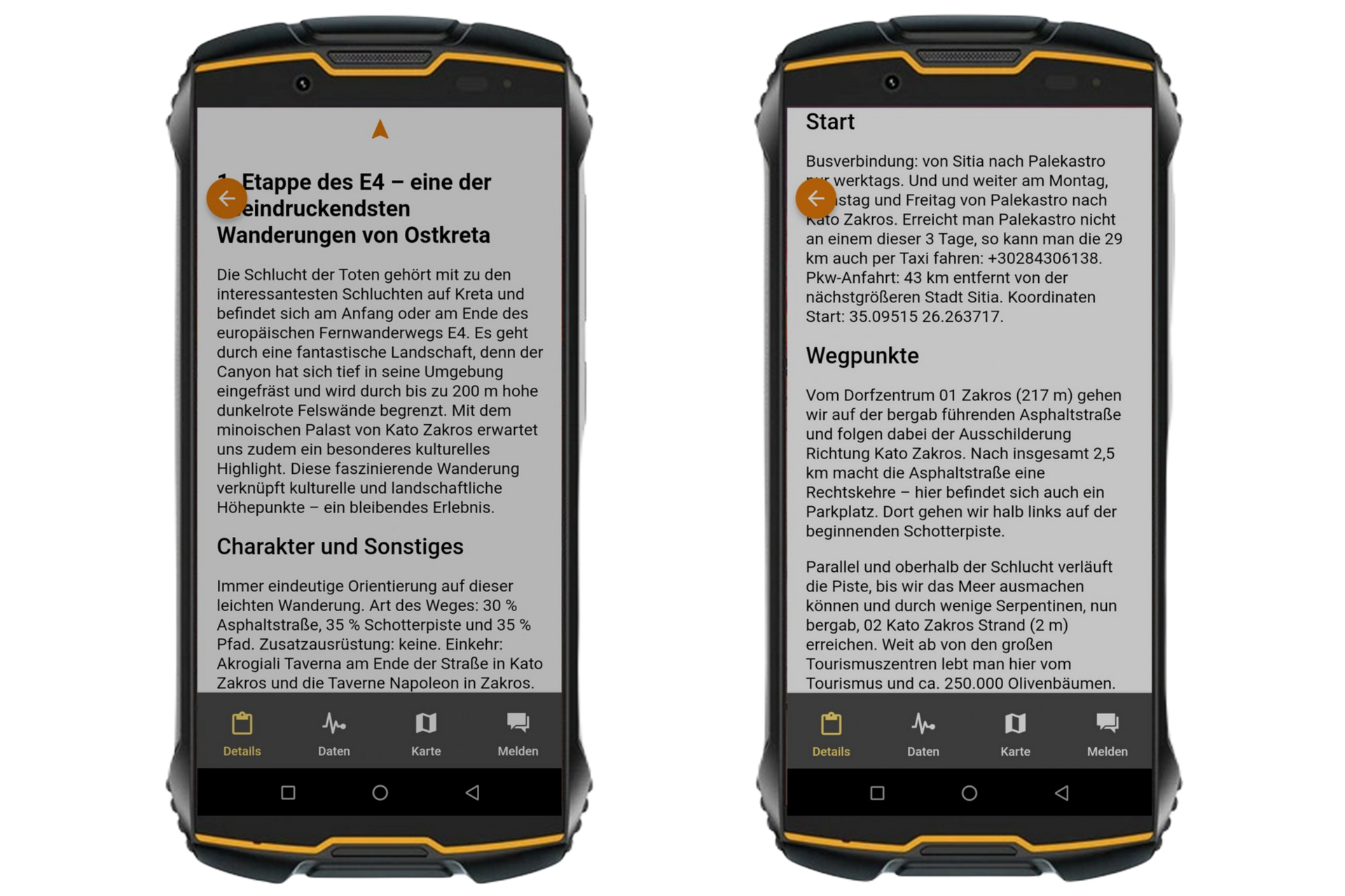 - Zusätzliche redaktionelle aufbereitete Wegbeschreibungen wie in einem klassischen Print-Wanderführer.