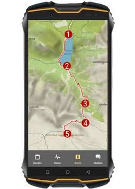 - Mithilfe von GPS-Navigation werden Sie alle Wege finden. Sie folgen den farbig hinterlegten Routen, dargestellt auf der Benutzeroberfläche Ihres Smartphones.