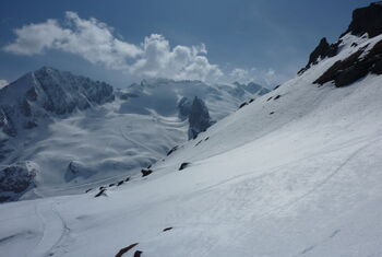 Kurze, aber knackige Abfahrt, die noch bis zum Ende der Saison gute Schneebedingungen aufweist.