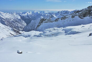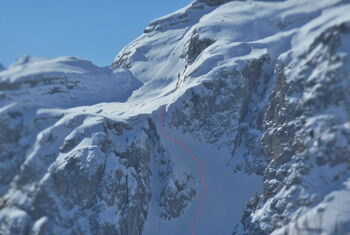 Großartige Variante durch ein verlassenes Tal mit Tiefschneegarantie.