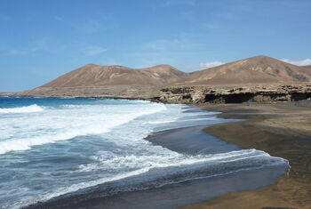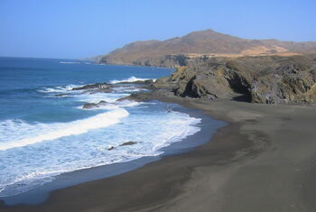Ein versteckter schwarzer Lavastrand an der wilden Nordwestküste. Achtung: Baden ist hier extrem gefährlich!