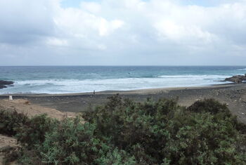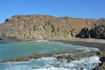 Nach einem kurzen Abstieg durch ein Barranco erreicht man den Strand, der zum Baden einlädt.