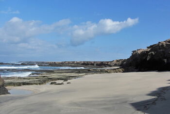Eine kleine Bucht, die nur bei Ebbe zum Verweilen einlädt. Bei niedrigen Wellen kann man baden.