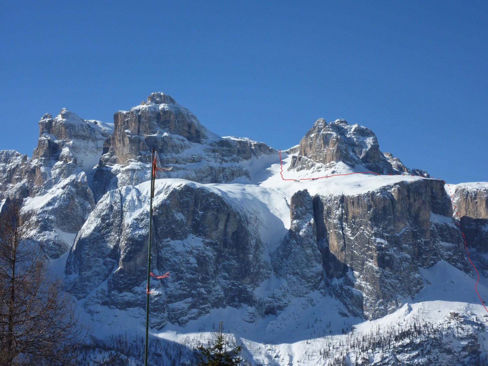 Wenn noch keine Spur vorhanden ist, ist die Orientierung nicht einfach, aber mithilfe des GPS-Tracks gut machbar. Die Abfahrt führt über einen Nordhang. Folgende Ausrüstung wird empfohlen: Produkte für alpine Sicherheit im Schnee, Tourenski und Skitourenhelm. Es empfiehlt sich die Einkehr in das Rifugio Maria bei der Bergstation, welches nach Maria Piaz, der Pionierin des Tourismus am Pordoipass, benannt wurde. Beste Jahreszeit: Januar bis April. Uns erwarten kurze Stücke mit bis zu 50° Hangneigung.
