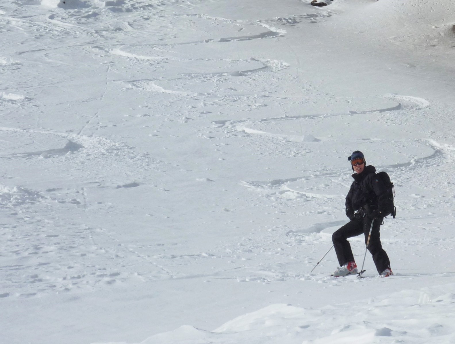 Mit ein bisschen Geschiebe kommen wir zur Bergstation des Sessellifts Nr. 32 Pianalungs Bocchetta und so wieder ins Skigebiet zurück.