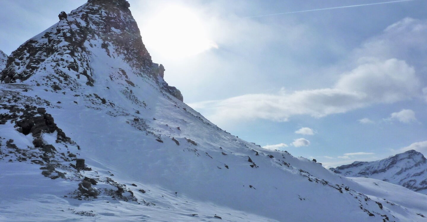 Einfacher Aufstieg mit schwieriger Abfahrt. Der Einstieg in die Scharte ist nicht einfach zu finden. Die Abfahrt führt über einen Nordosthang. Folgende Ausrüstung wird empfohlen: Produkte für alpine Sicherheit im Schnee, Freerideski und Skitourenhelm. Es gibt keine Einkehr auf der Tour. Außer man nimmt vor oder nach der Tour eine Stärkung in dem Rifugio Città di Vigevano. Beste Jahreszeit: Januar bis April. Uns erwarten kurze Stücke mit bis zu 40° Hangneigung.