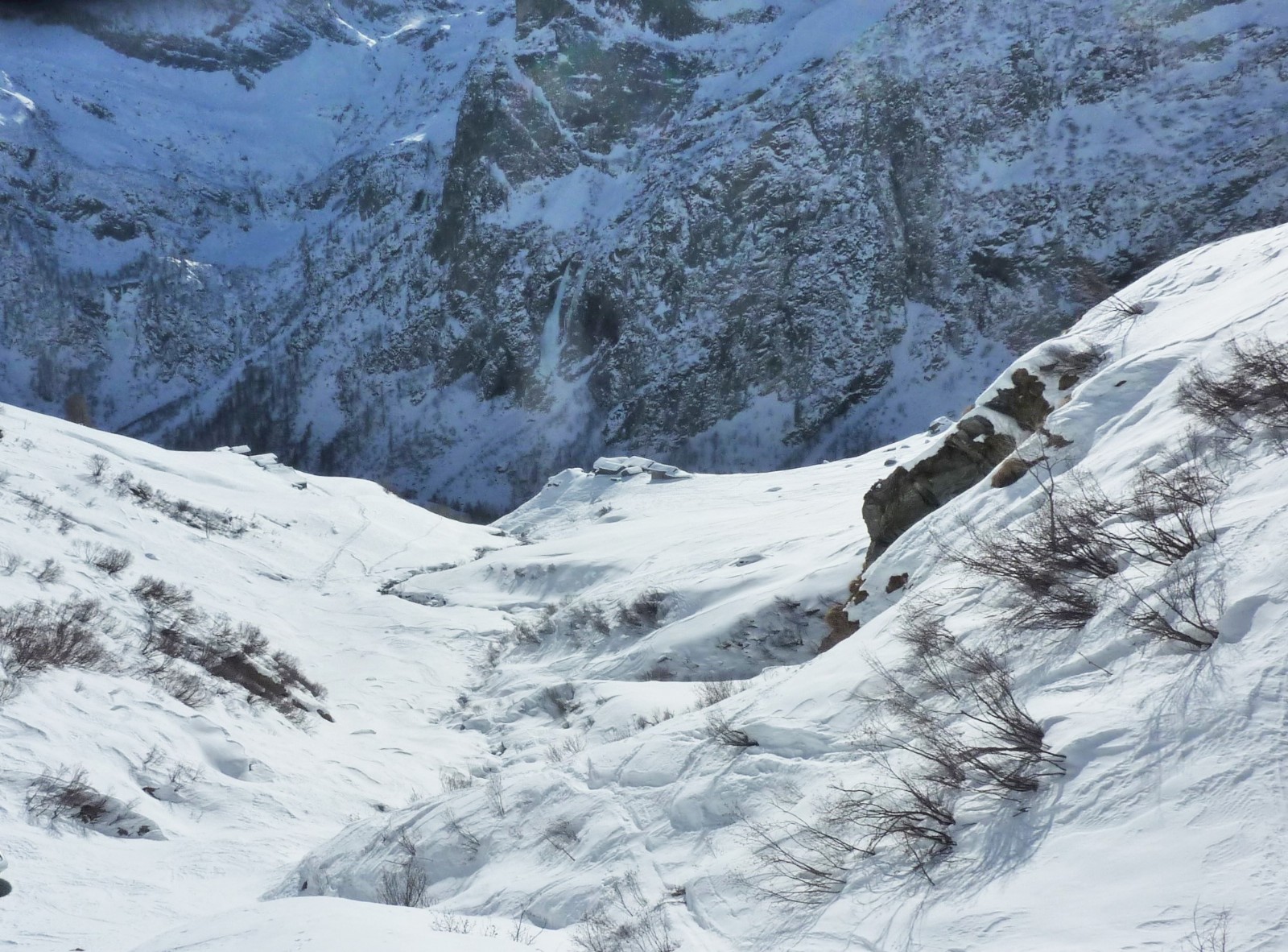 Der Startpunkt ist bei der Bergstation der Seilbahn Nr. 30 Pianalunga Cimalegna Salati, von wo wir Richtung Gabit bis etwa zur Hälfte abfahren, um dann links in den Hang zu queren.