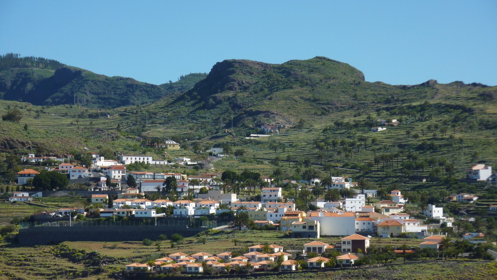 Am (01) Start und Ziel Alajeró (789 m) gehen wir ca. 40 m auf der Straße Richtung San Sebastián, um noch vor dem Restaurant El Mesón de Clemente, vor einem Zebrastreifen, links in die schmale Gasse - Weg mit dem Geländer - einzubiegen und zwischen den Häusern hindurchzugehen. Bei einer großen Steinplatte gehen wir links bis zur GM-3 vor und bleiben anschließend ein kurzes Stück auf dieser, um dann rechts den Wanderweg zur tiefer gelegenen Nebenstraße zu nehmen und dort rechts dem Verlauf der Straße 600 m folgen. In einer scharfen Linkskurve der Straße gehen wir halb rechts an einem braunen Garagentor vorbei und erreichen den zentralen Hauptplatz von Alajeró. Mittig zwischen den Häusern, in nördliche Richtung, beginnt der Weg Richtung Imada. Wir erreichen abermals die GM-3 und gehen auf der Asphaltstraße ortsauswärts an der Busstation vorbei. Die Straße macht eine Linkskehre und 20 m hinter einer Ruine verlässt der Camino nach rechts die GM-3.