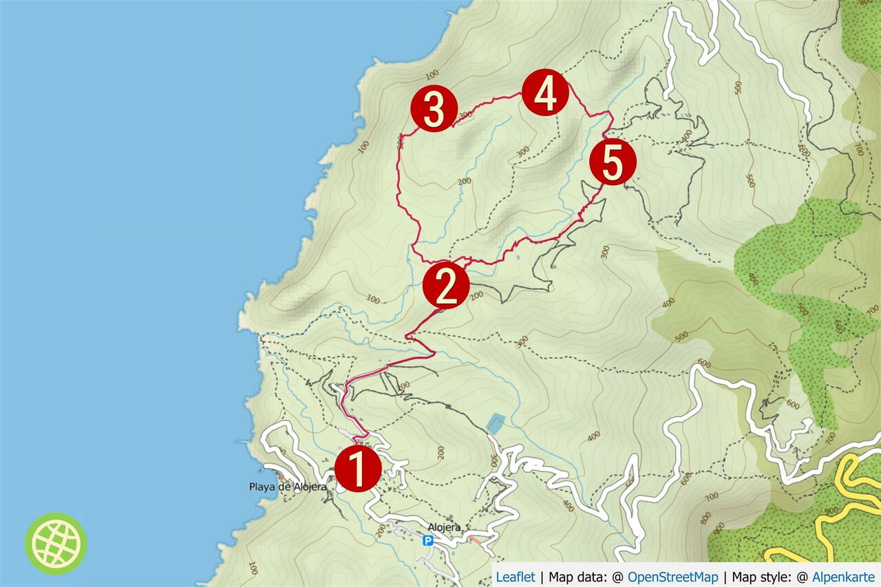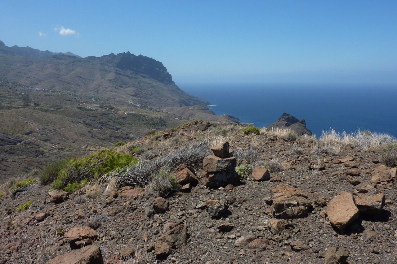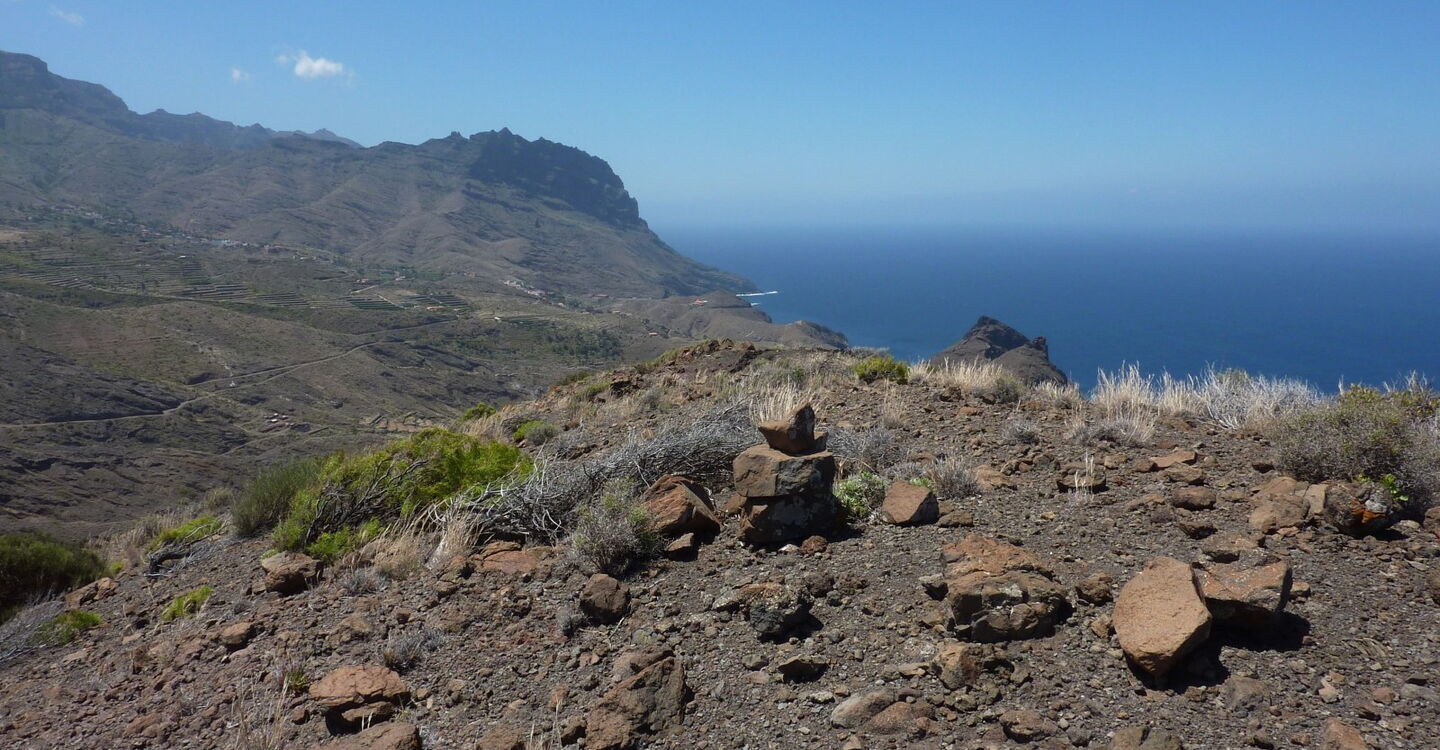 Sucht man den Startpunkt unserer heutigen Wanderung auf der Karte, so findet man Alojera zwischen den Orten Vallehermoso im Norden und dem Valle Gran Ray im Süden. Touristisch ist dieser Ort kaum erschlossen, denn es gibt nur einige Privatunterkünfte und keine Hotels. Haben wir auf unserer Tour erst einmal die Caseria Cubada hinter uns gelassen, wird es entlang eines Höhenzugs sogar noch einsamer. Es erwarten uns atemberaubende Blicke über die zerklüftete Nordwestküste von La Gomera. Entlang des Barrancos Taz geht es durch prachtvolle Palmenhaine zurück.