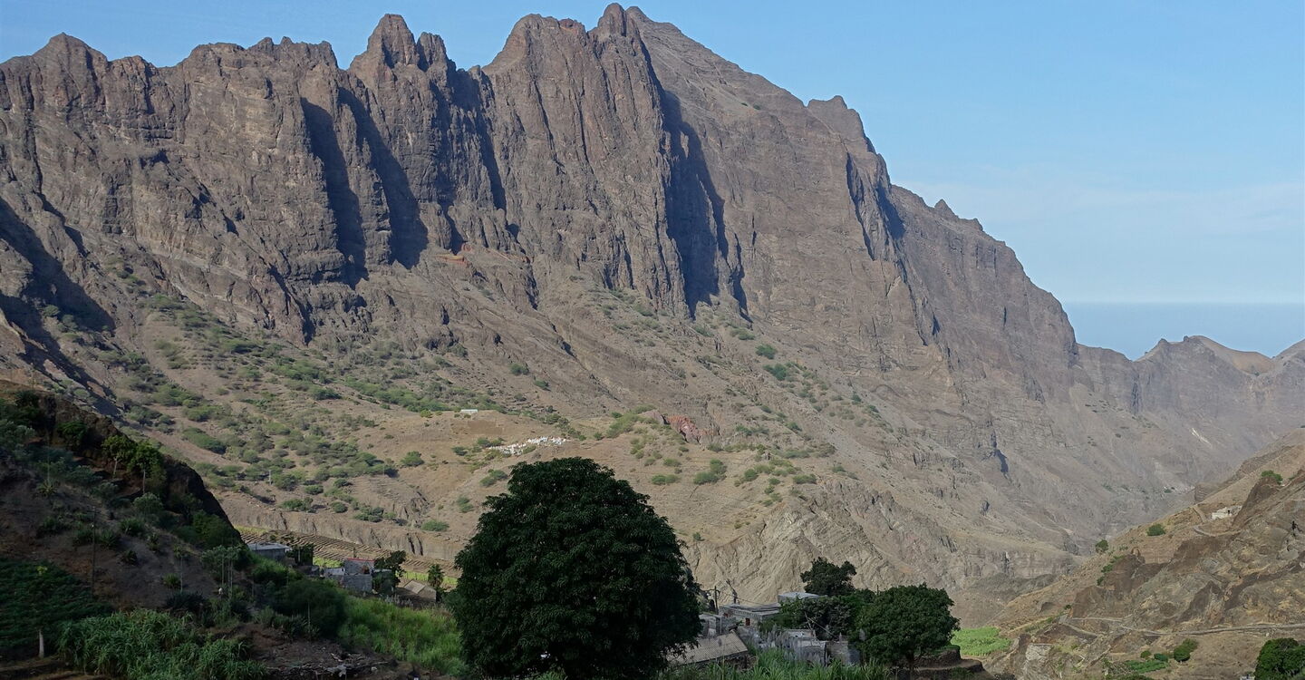 Besonders intensiv erlebt man auf der heutigen Tour die grünen Oasen, die durch die Besiedlung entstanden sind. Die Bauern haben über Generationen das wüstenartige Gelände eingeebnet, so entstanden effizient angelegte Terrassenfelder. Während sich das Trockenflussbett des Ribeira do Alto Mira Richtung Meer schlängelt, gibt es auf seinem Weg immer wieder Quellen. Deren Wasser wird in geschickt ausgeklügelten Systemen über Wasserleitungen verteilt, um die kleinen und weit abgelegenen Oasen mit der kostbaren Flüssigkeit zu versorgen. Landschaftsprägend ist auch die über Jahrtausende entstandene tiefe Schlucht des Ribeira do Alto Mira, die von steilaufragenden Bergen flankiert wird. Durch diese überwältigende Szenerie führt die heutige Wanderung bis zum Endpunkt der Tour, dem gottverlassenen Dorf Ribeira da Cruz, im nordwestlichen Teil der Insel Santo Antão.