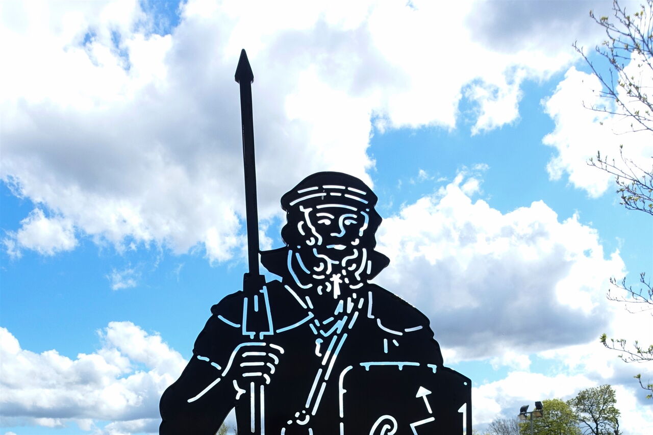 Von einem der Parkplätze am Supermarkt queren wir die Union St. und gehen in nördlicher Richtung links an der Kirche vorbei in den Peel Park. Die Geschichte von Kirkintilloch reicht bis in die Römerzeit zurück, als es eine Festung an der Antoninischen Mauer war, dem nördlichsten Zipfel des Römischen Reiches. Der Antoninuswall verlief direkt durch den Peel Park, ein hoher Hügel im Park markiert den Ort der ehemaligen Festung. Wir gehen rechts durch den Torbogen zur alten Kirche von 1644, heutzutage das 01 Auld Kirk Museum (57 m) – Öffnungszeiten: Dienstag bis Samstag 10:00–13:00 und 14:00–17:00. Es beherbergt römische Artefakte mit Bezug zum Antoninuswall. Wir gehen durch die Einkaufsstraße von Kirkintilloch, um hinter der Pfarrkirche St Mary's und vor der Brücke auf dem Weg neben dem 1768 fertiggestellten Forth and Clyde Canal zu laufen. Seit 2000 kann man den Kanal wieder für Freizeitaktivitäten nutzen.
