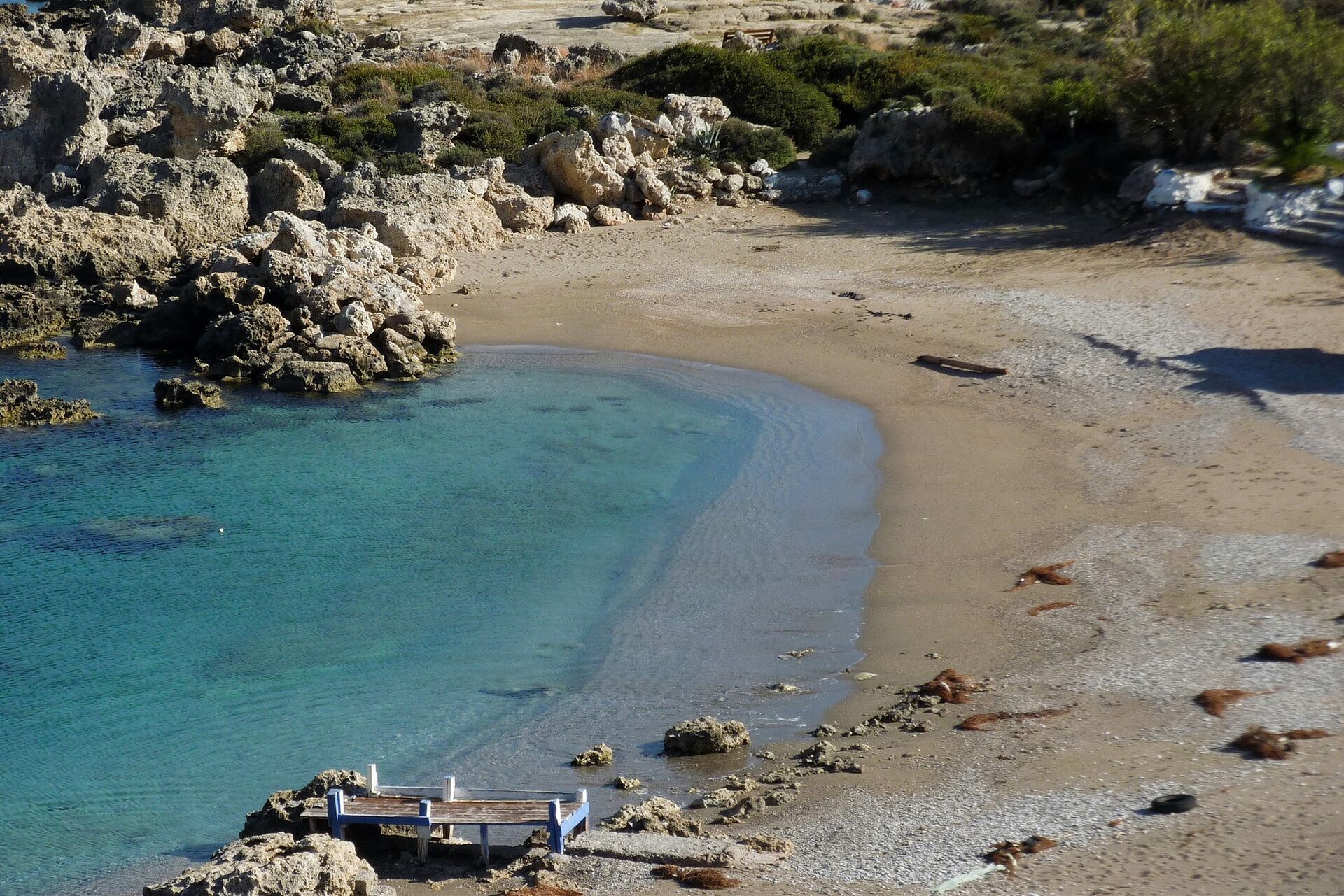 650 m führen über ein wegloses und inzwischen stark verwachsenes Teilstück. Auf diesem Stück ist die Orientierung nicht einfach, auch erwartet uns eine leichte Felskletterei. Art des Weges: 50 % Asphaltstraße, 30 % Pfade und 20 % weglos. Ausrüstungsempfehlung: Wanderstöcke und lange Hose. Einkehr: Hotel Ladiko sowie die Tavernen am Strand von Ladiko. Beste Jahreszeit für diese Tour: April bis Oktober. Variante: Wandert man nur bis zum Wegpunkt 3, den Hipparchos Apartments, genießt dort die traumhafte Aussicht und geht auf dem gleichen Weg zurück, so ist der Schwierigkeitsgrad dieser Wanderung blau.