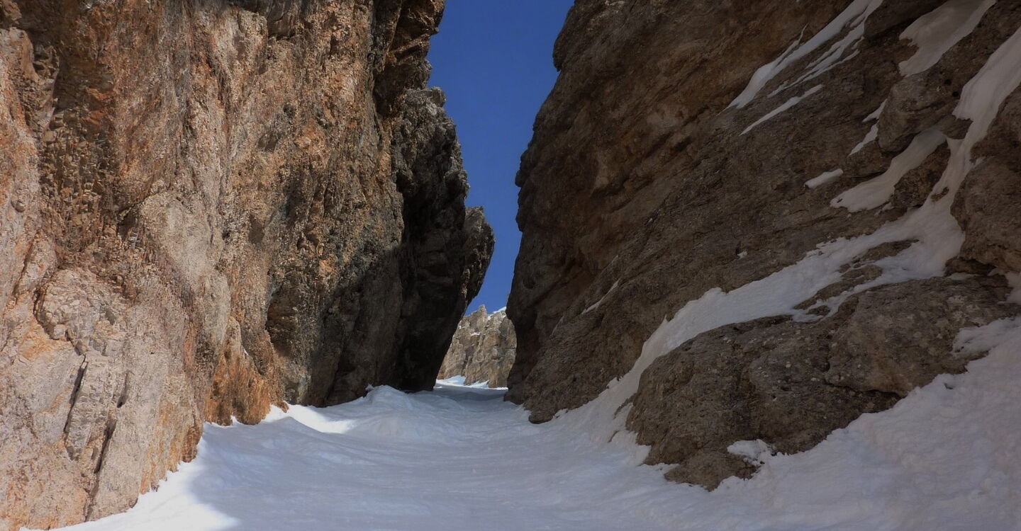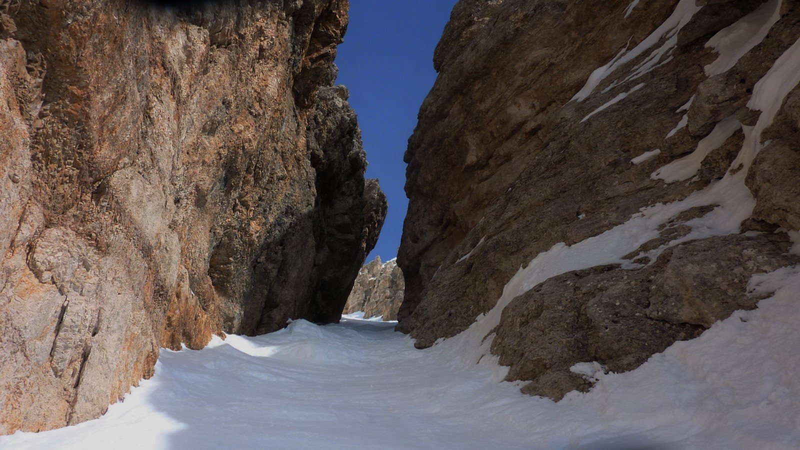 Einfache Orientierung im Anstieg sowie auf der steilen und teils vereisten Abfahrt. Die Abfahrt führt über einen Südhang. Folgende Ausrüstung wird empfohlen: Produkte für alpine Sicherheit im Schnee, Freerideski und Skitourenhelm. Es empfiehlt sich die Einkehr in das Rifugio Maria bei der Bergstation, welches nach Maria Piaz, der Pionierin des Tourismus am Pordoipass, benannt wurde. Beste Jahreszeit: Januar bis April. Uns erwarten kurze Stücke mit bis zu 45° Hangneigung.