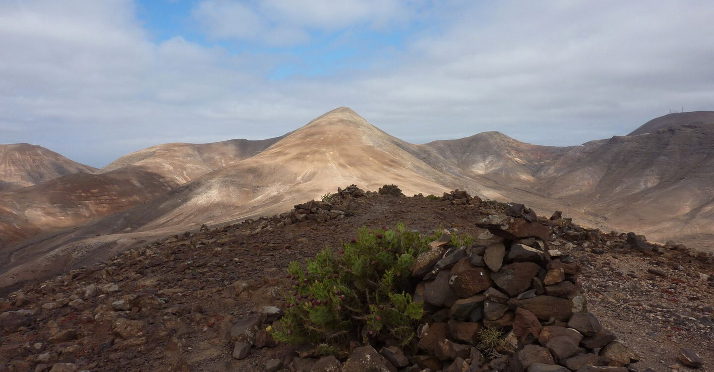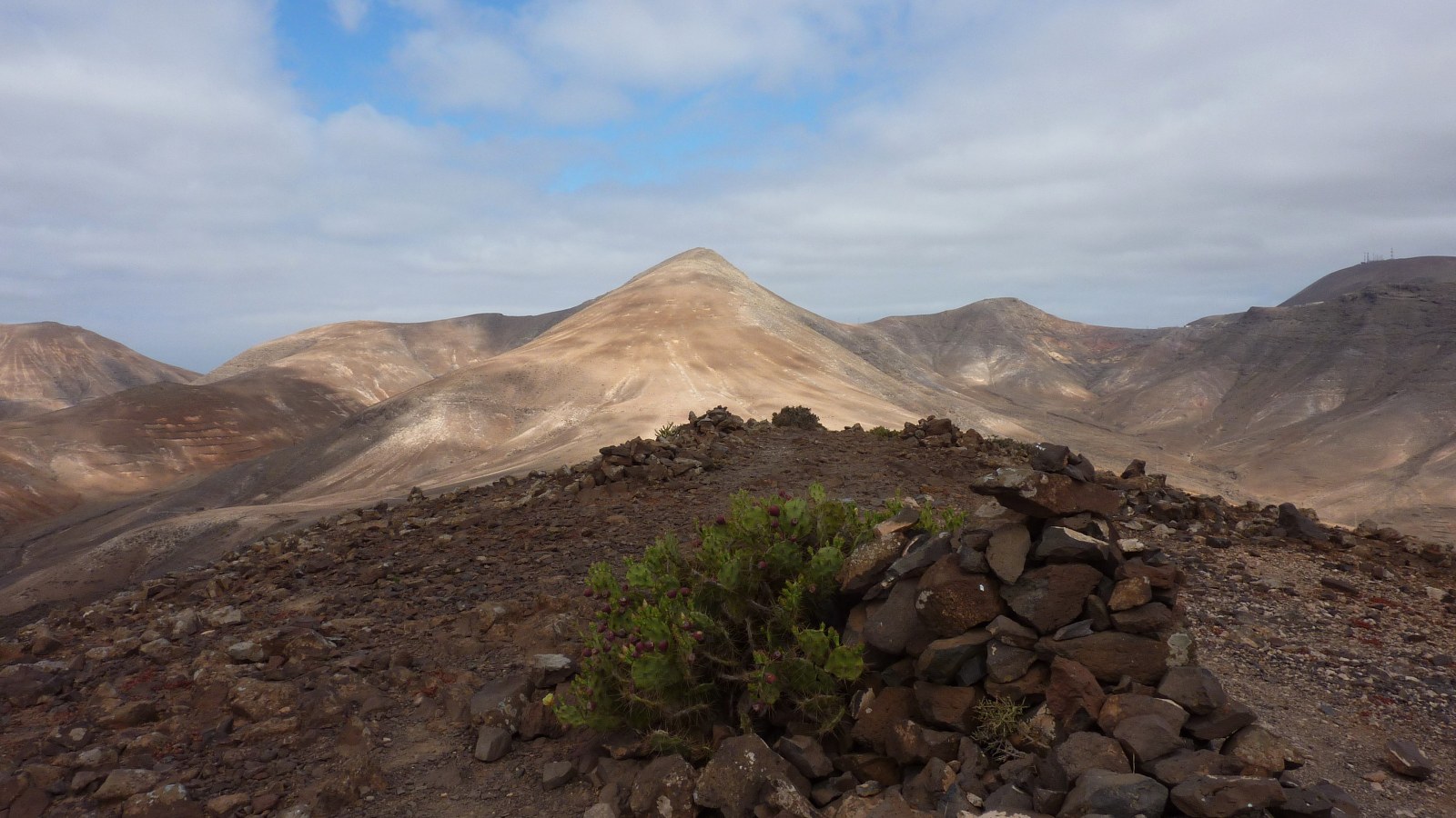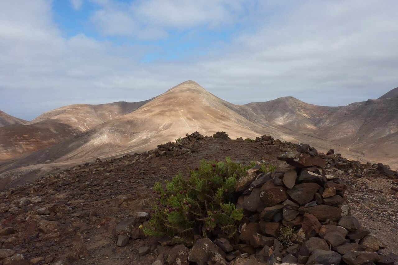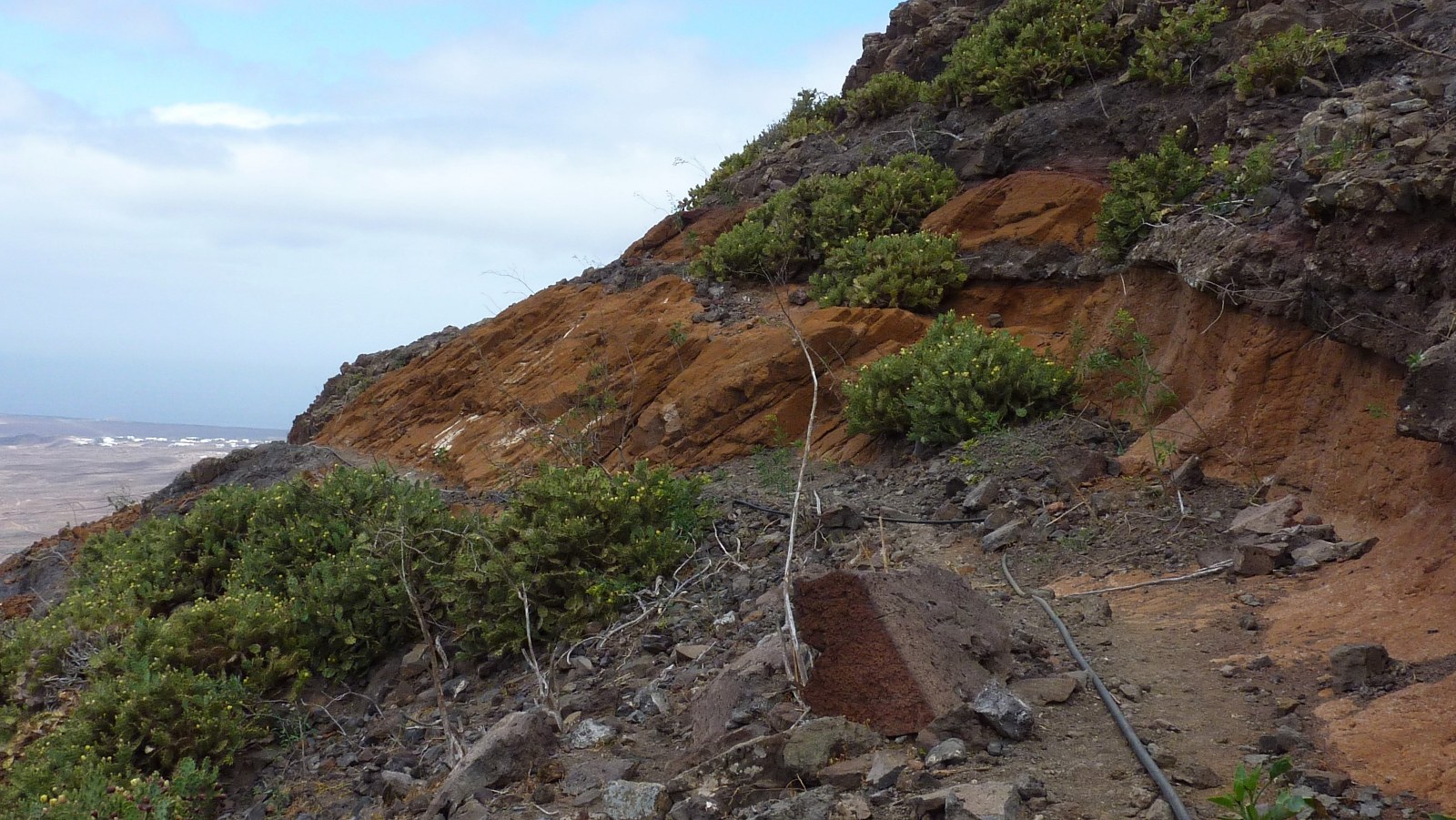 Auf einer Anhöhe folgen wir der roten Markierung und gehen links bis zum Aussichtspunkt (04) Morro de la Loma del Pozo (324 m). Bei guter Sicht kann man ganz links das Hochhaus von Arrecife sehen. Schaut man nach rechts, über den südlichsten Zipfel von Lanzarote, erkennt man die Punta del Papagayo. Sogar bis nach Fuerteventura kann man bei guter Sicht schauen. Wir wandern zurück zur Anhöhe, an der wir nun links gehen. Der Pfad führt vorbei am Rifugio del Ajibe und schon bald erreichen wir das Barranco de la Casita.