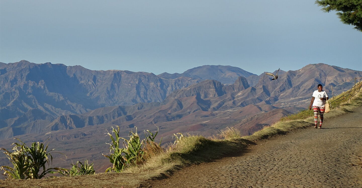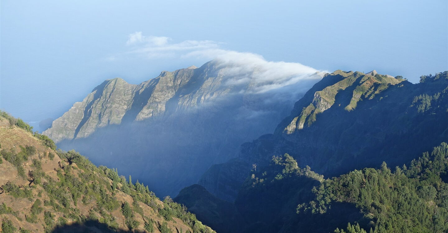 In verhältnismäßig kühler Bergluft, führt die Wanderung auf einer Kopfsteinpflasterstraße, die sich über einen Gebirgsgrat schlängelt. Dieser trennt den feuchten Norden des Eilands vom trockenen Süden. Zunächst geht es vorbei an dem monumentalen Vulkankrater Cova de Paúl, bis wir durch den größten zusammenhängenden Wald auf den Kapverdischen Inseln spazieren. Immer wieder eröffnen sich faszinierende Fernblicke in das tiefer liegende Vale de Paúl, aber auch in südliche Richtung, über die staubtrockenen Erosionshänge, bis zum Atlantischen Ozean. Der absolute Höhepunkt der Tour ist die 360° Rundsicht vom Pico da Cruz. Während der blauen Stunde ist die Fernsicht noch beeindruckender, ein bleibendes Erlebnis. Vielleicht bildet diese Tour den krönenden Abschluss eines Urlaubs, auf der man die gewanderten Ziele noch einmal Revue passieren lässt?