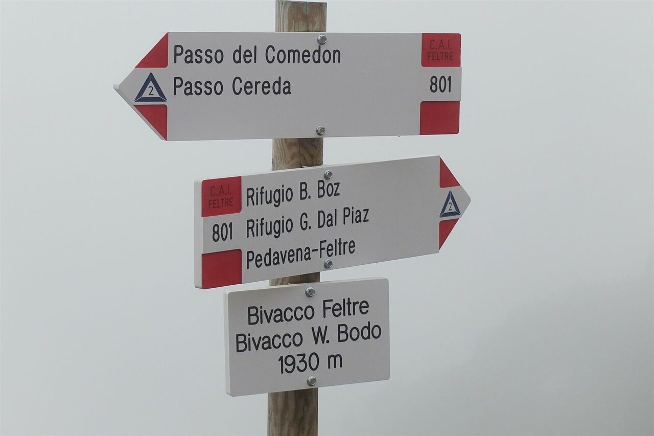 Startpunkt: Das Bivacco Feltre ist nur zu Fuß erreichbar und befindet sich am Ende der Wanderung 46. Endpunkt: das Rifugio Bruno Boz am Anfang der Wanderung 48.