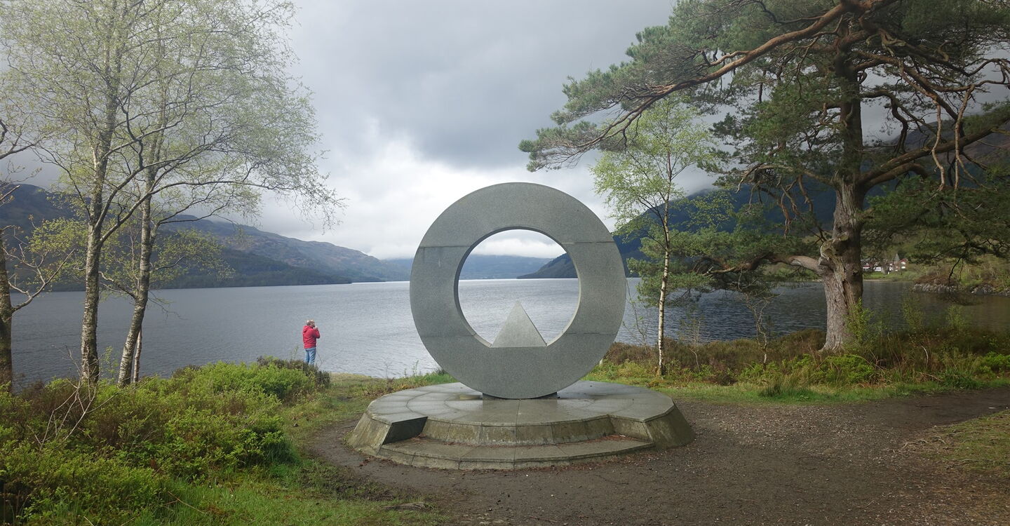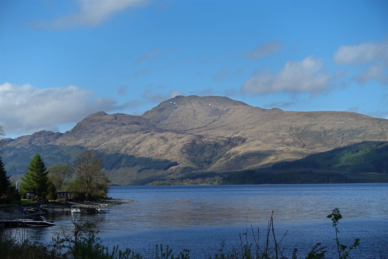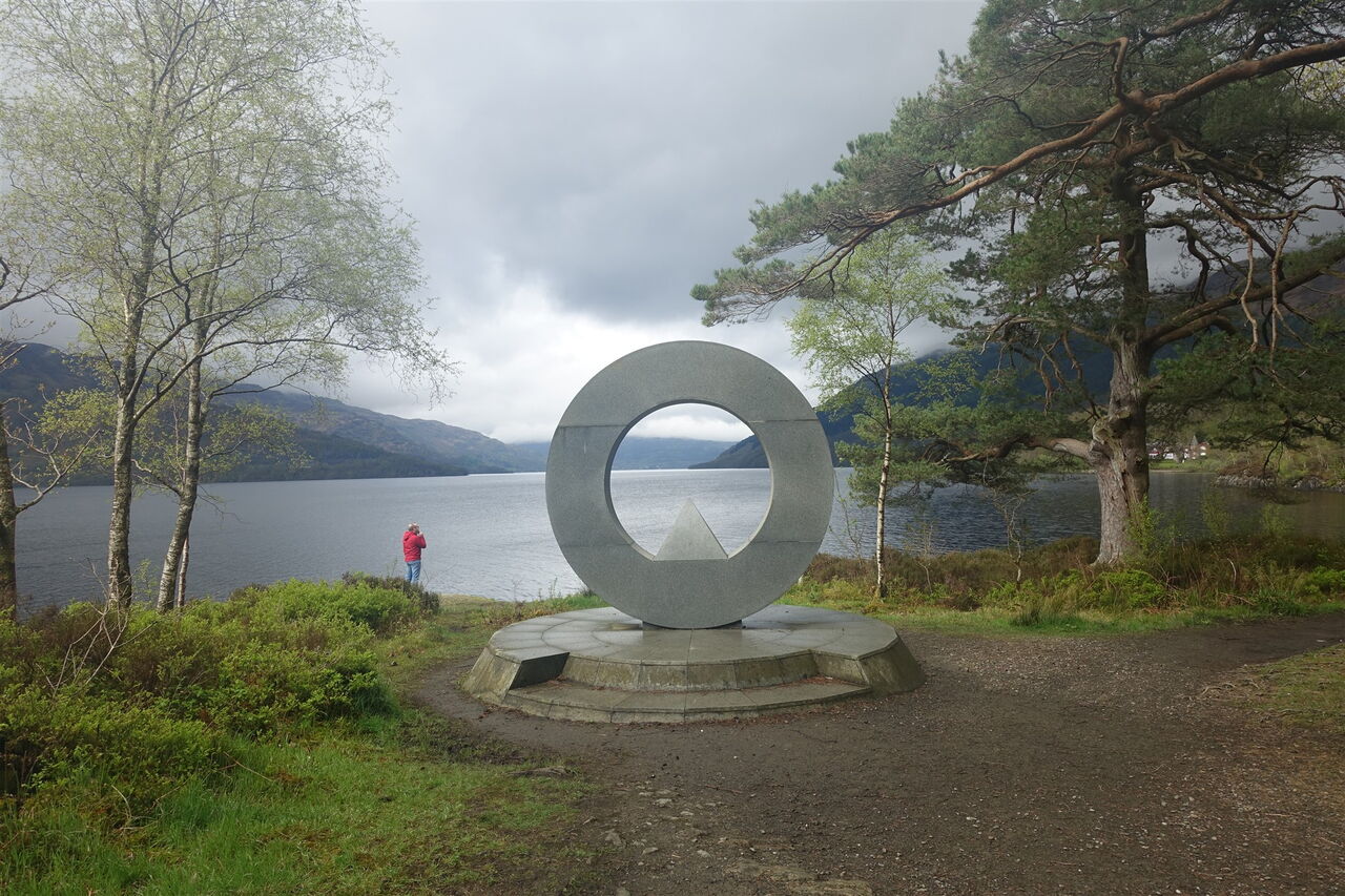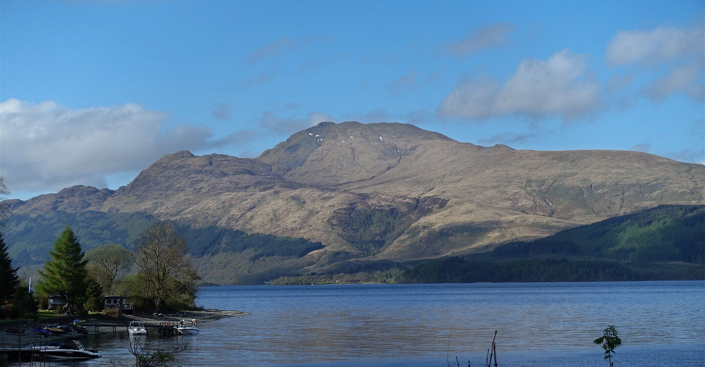 Zunächst geht es durch einen Eichenwald, dann passieren wir ein 02 Gatter (194 m) und kurz später queren wir eine Forststraße. Schon bald lassen wir die Bäume hinter uns, der Blick ist frei in Richtung des Ben Lomond. Wir passieren im Folgenden ein weiteres Gatter. Noch in den Neunzigerjahren war der nachfolgende Aufstieg bis zu 25 m breit und die Oberfläche stark erodiert. Dann legte der National Trust den heutigen ausgezeichneten Weg an, der nur noch ein paar Meter breit ist, sodass die Natur sich erholen konnte. Stand 2018 betreute der National Trust 46 Wanderwege in Schottland. Nach 3,35 km erreichen wir einen schönen Aussichtspunkt, den kleinen Gipfel des Sron Aonaich (577 m).