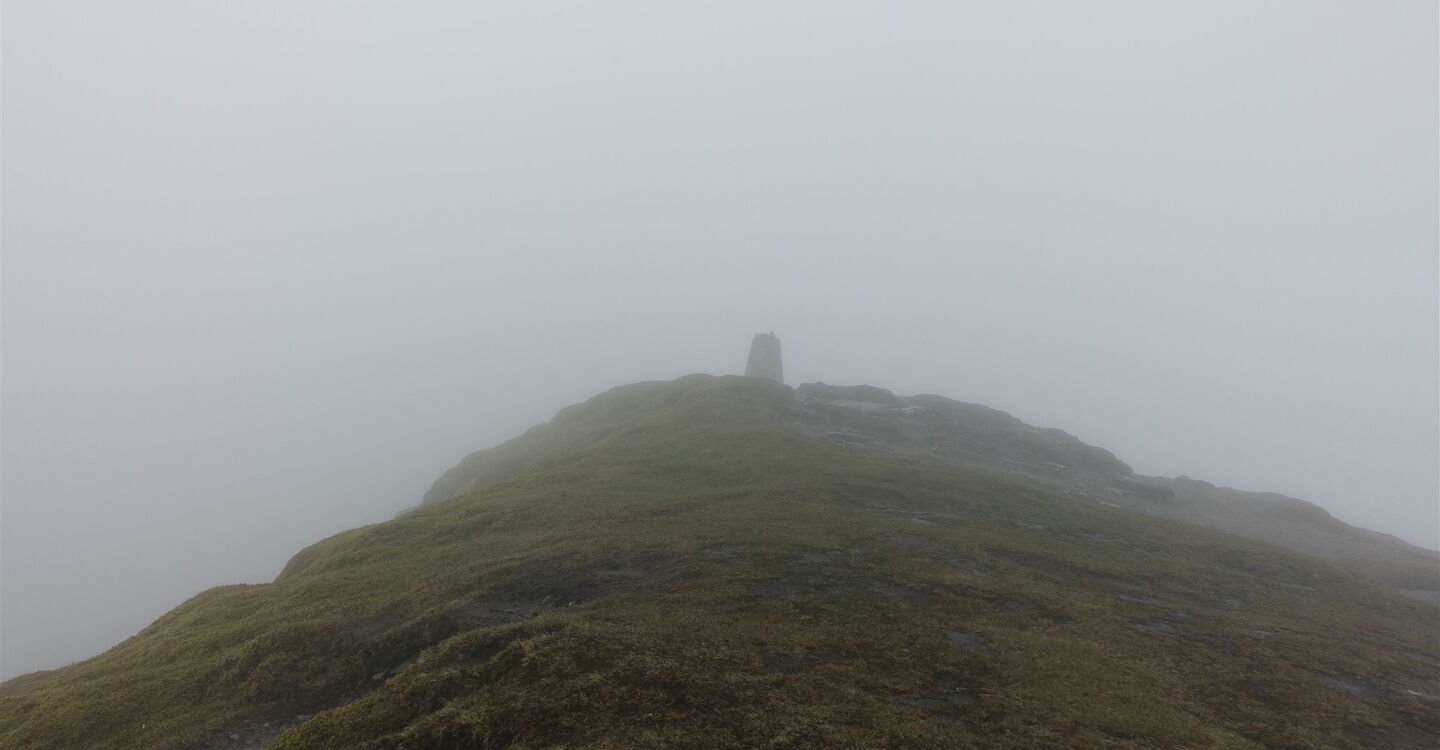 Wir setzen unseren Weg auf dem lang gezogenen Bergrücken fort, bis er noch einmal zum finalen Aufstieg etwas steiler wird. Wir haben den 03 Ben Lomond (974 m) bestiegen. Von hier aus können wir in den beeindruckenden östlich gelegenen Felskessel hineinschauen, zuvor war die Sicht versperrt. Der 360°-Fernblick lässt uns verharren, wenn das Wetter mitmacht! Der einfachste Rückweg ist der Hinweg. Eine anspruchsvollere Alternative ist der Abstieg über den nordwestlich gelegenen Grat.