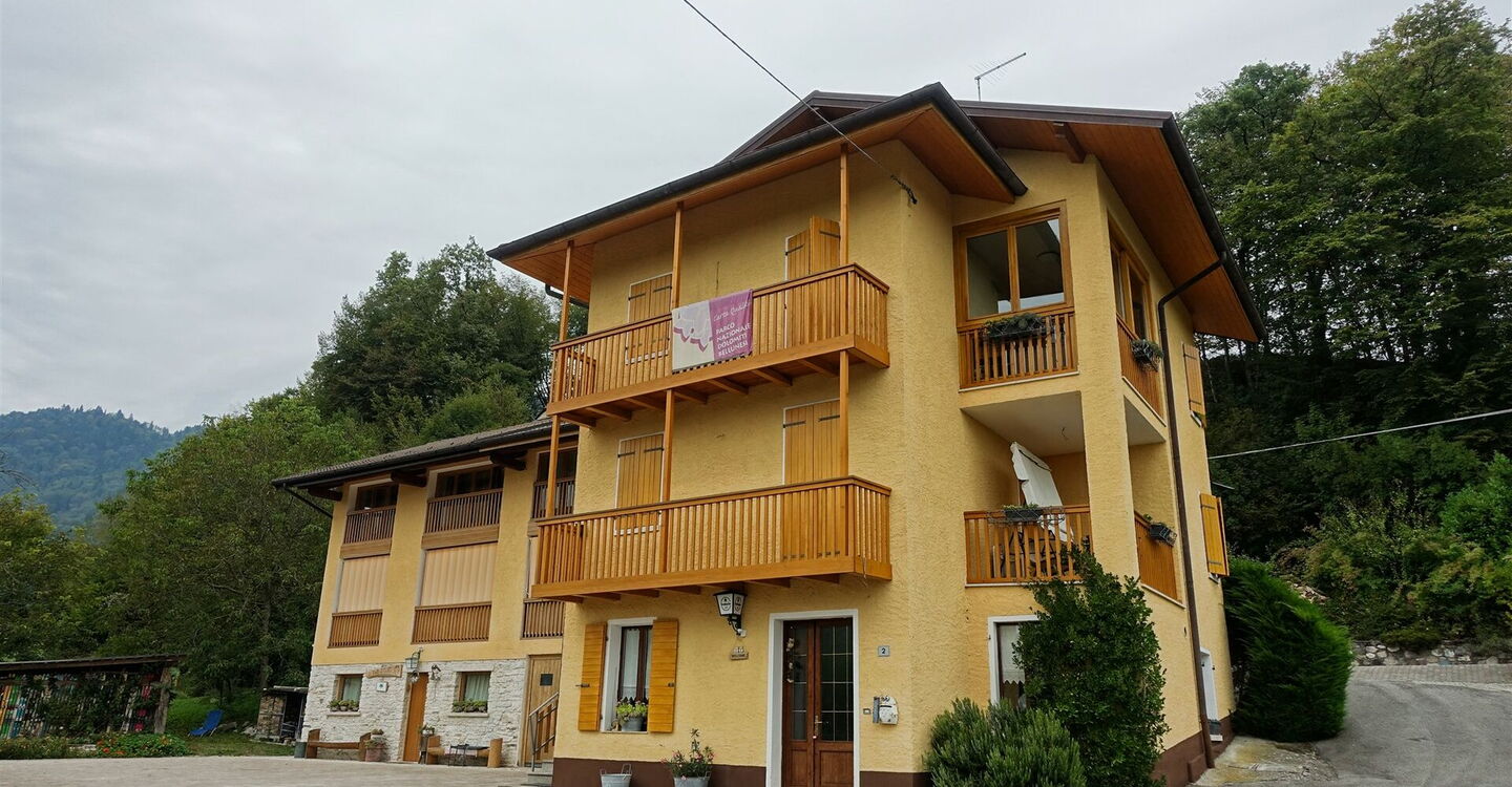 In dem Dorf Lamen gehen wir von der 01 Bushaltestelle Lamen (532 m) in östlicher Richtung auf der gering befahrenen Straße an der Pizzeria La Caliera vorbei. In der nachfolgenden Ortschaft Pren folgen wir nicht rechts bergab der Ausschilderung nach Pedavena, sondern wandern halb links weiter durch die Ortschaft Pren. Auf Höhe des links von uns liegenden Friedhofs sehen wir in der Ferne einen Kirchturm auf einem Hügel. Nachdem wir ein kleines Waldstück verlassen haben, sehen wir abermals den Kirchturm, an dieser Stelle zweigt rechts die Via Don ab.