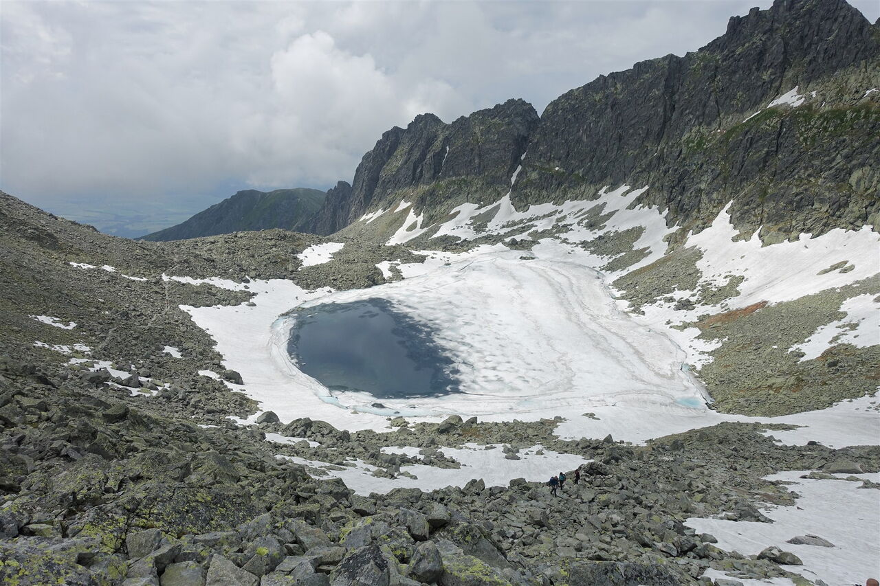 Nach einer kurzen Kletterstelle, unter Zuhilfenahme der Hände, steigen wir auf dem breiten Pfad zum See 04 Nižné Wahlenbergovo pleso (2145 m) ab. Er wurde nach dem schwedischen Botaniker und Arzt Göran Wahlenberg benannt, der an dieser Stelle 1813 die Vegetation der Hohen Tatra erforschte.