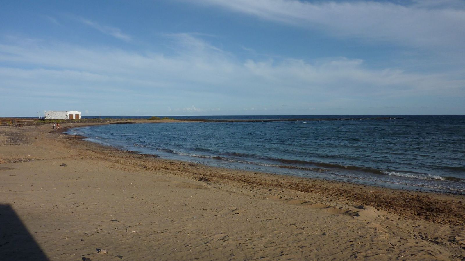 Von dort gehen wir in südliche Richtung zum (02) Playa de Las Salinas (16 m), wo es eine Badegelegenheit und ein Restaurant gibt. Im weiteren Verlauf gehen wir an den Häusern vorbei und weiter bis zum Ende der Straße, um dort auf dem beginnenden Küstenpfad zu wandern. Wir gehen direkt auf die weiße, spitz zulaufende Grundstücksbegrenzungsmauer zu. Bevor wir diese erreichen, gehen wir links ein Stückchen bergab, um dann sofort rechts aufzusteigen und halb links den Weg fortzusetzen. Immer wieder umlaufen wir Barrancos weiträumig. So erreichen wir automatisch auf einem der vielen Pfade die Schotterpiste.