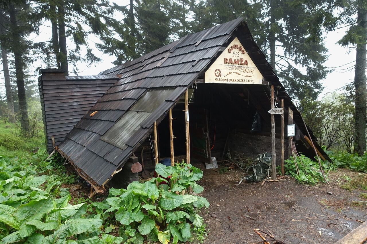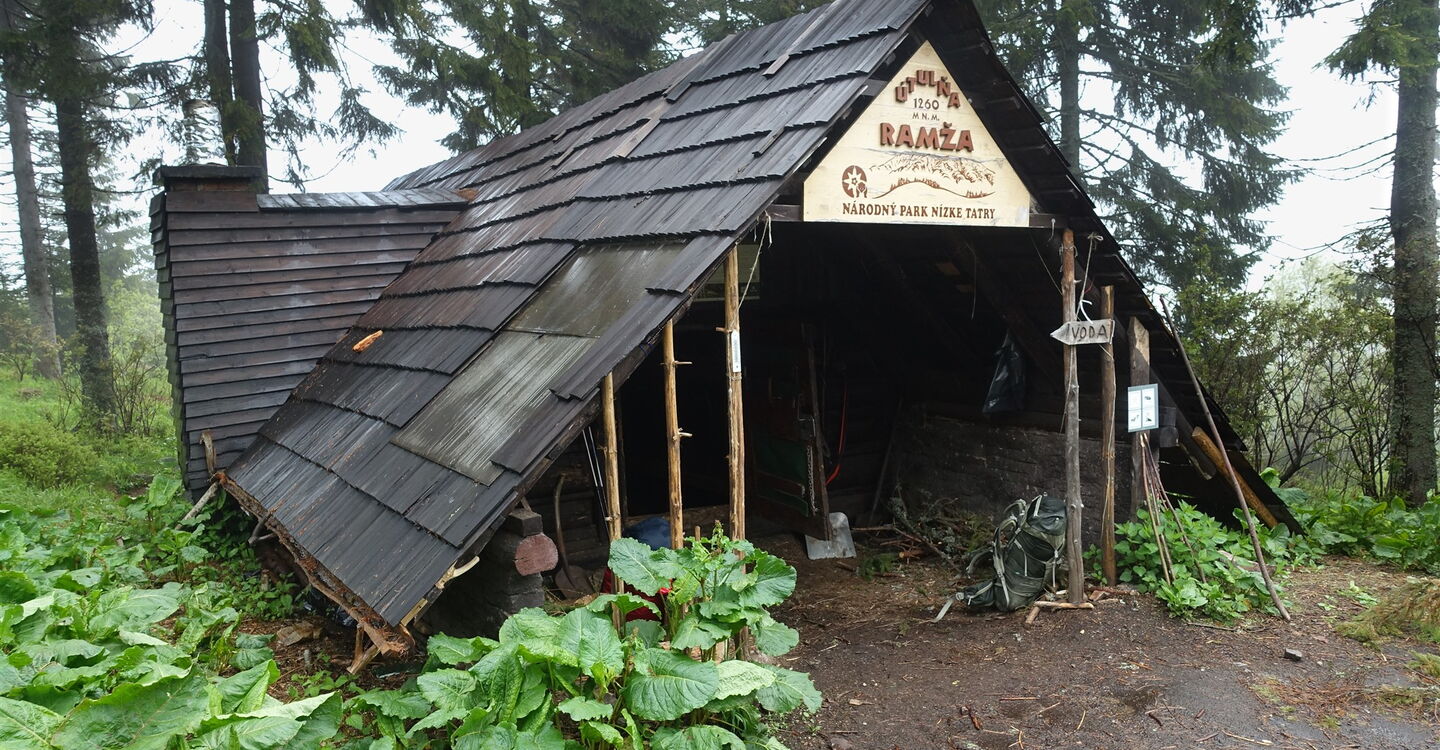 Wir erreichen den 1319 m hohen Bacúšske sedlo, zu dem auch der Wanderweg 12 aus diesem Wanderführer führt. Durch nun fast ebenes Gelände erreichen wir die unbewirtschaftete Übernachtungsmöglichkeit 05 Biwack Útulňa Ramža (1260 m). Die Holzhütte ist für 15 Personen ausgelegt und verfügt über einen kleinen Kamin zum Einheizen. In der Nähe befinden sich Müllcontainer, eine Grubenlatrine und eine Quelle. GPS: 48.912900 19.796383.