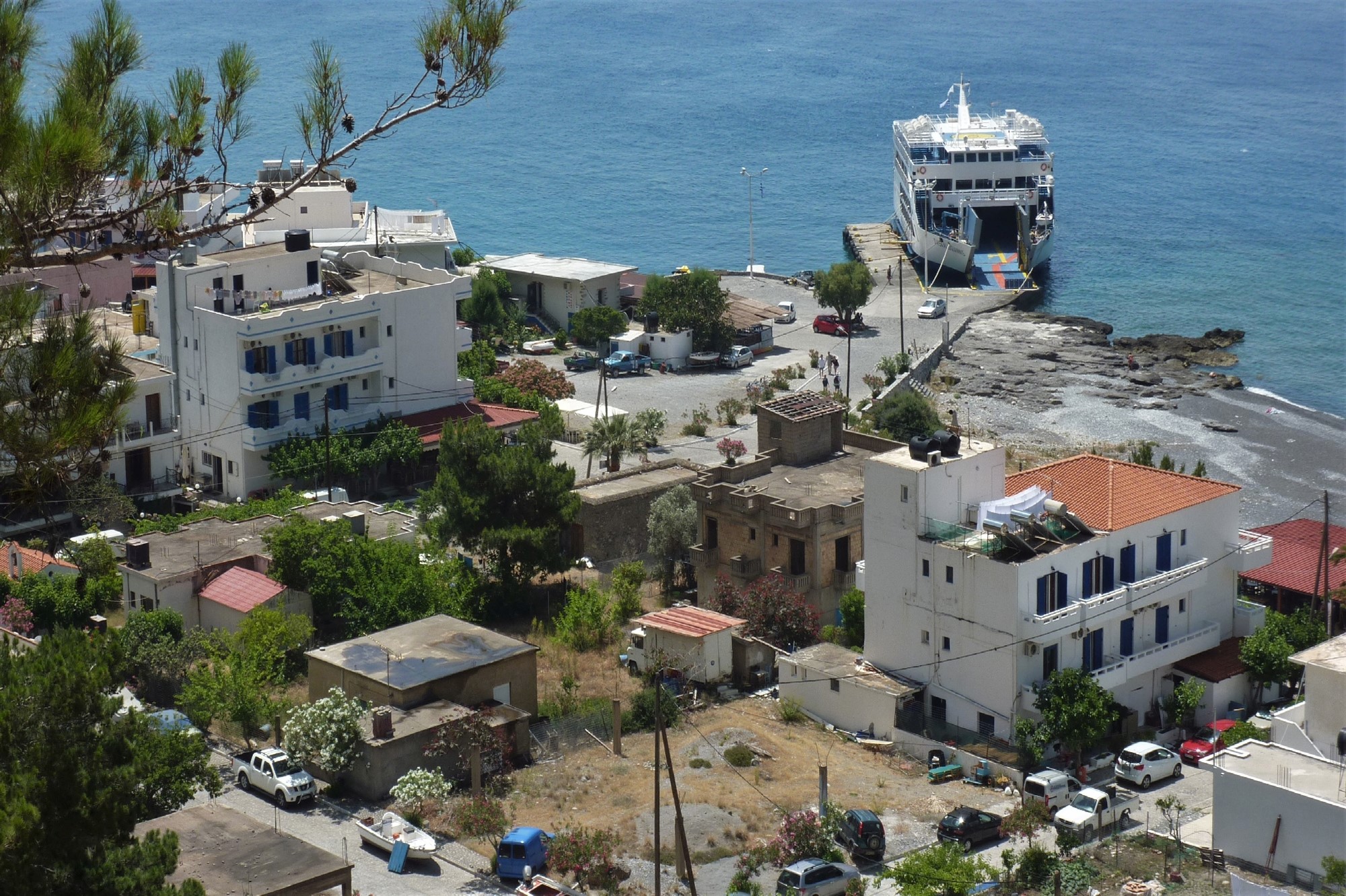 Busverbindung: 5 tägliche Verbindungen von Chora Sfakion nach Chania. Pkw-Anfahrt: Der Fischerort Chora Sfakion liegt an den südöstlichen Ausläufern der Weißen Berge ganz im Süden der Insel am Lybischen Meer, 72 km südöstlich von Chania. Koordinaten Start: 35.200417 24.1382.