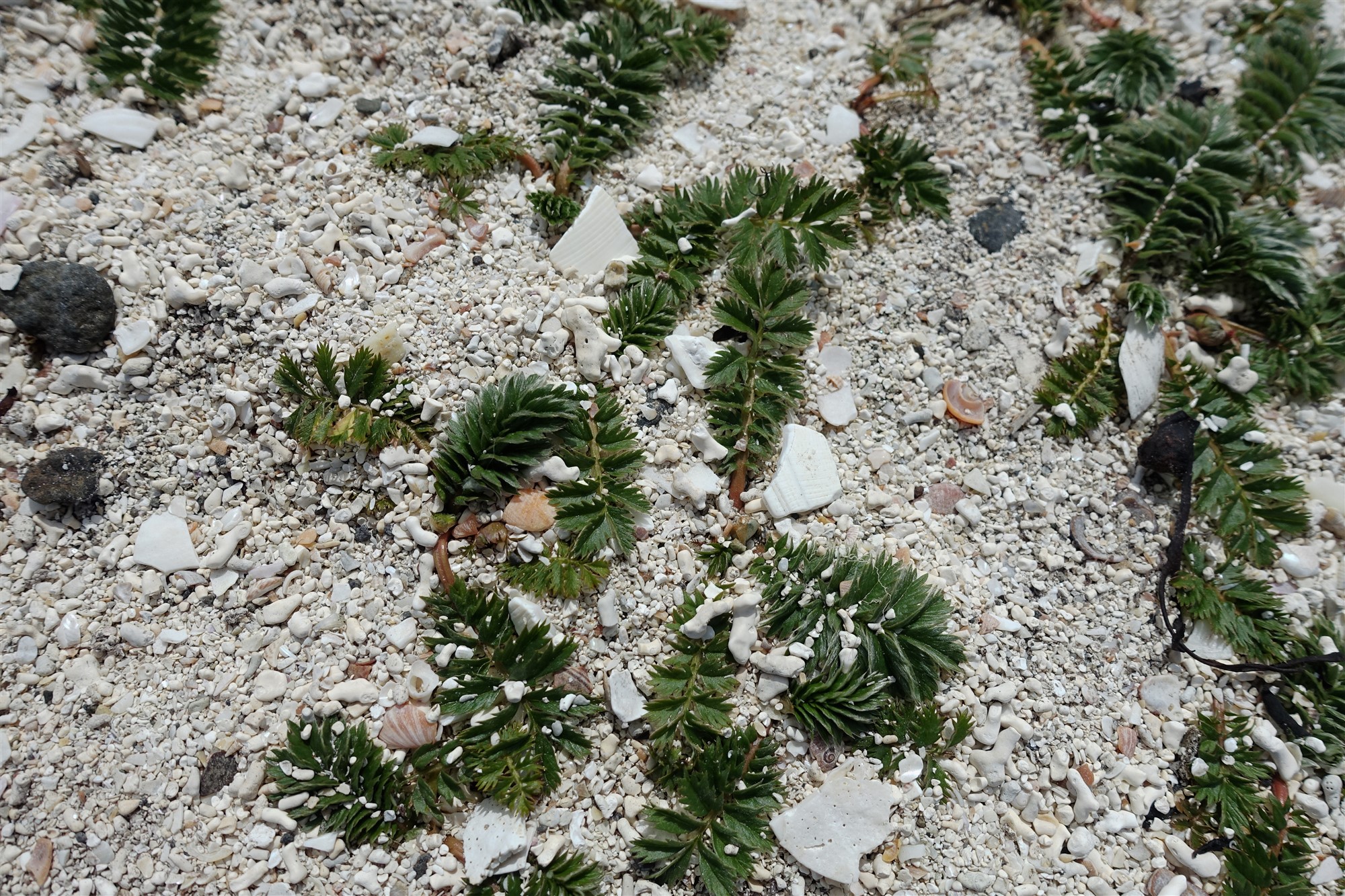 Kurz führt der Pfad über erodierten Boden, bis wir dann auf grasbewachsenem Untergrund den 04 Coral Beach (2 m) erreicht haben. Der Strand besteht aus zerriebenem Red Coralline, einem korallenartigen Seetang (auch bekannt als Maërl), der das Wasser tropisch blau erscheinen lässt – ja, wenn die Sonne scheint. Auf der vorgelagerten Insel wächst der Seetang ca. 1 mm pro Jahr! So nahm man fälschlicherweise an, dass der Strand aus abgestorbenen Korallen bestand.