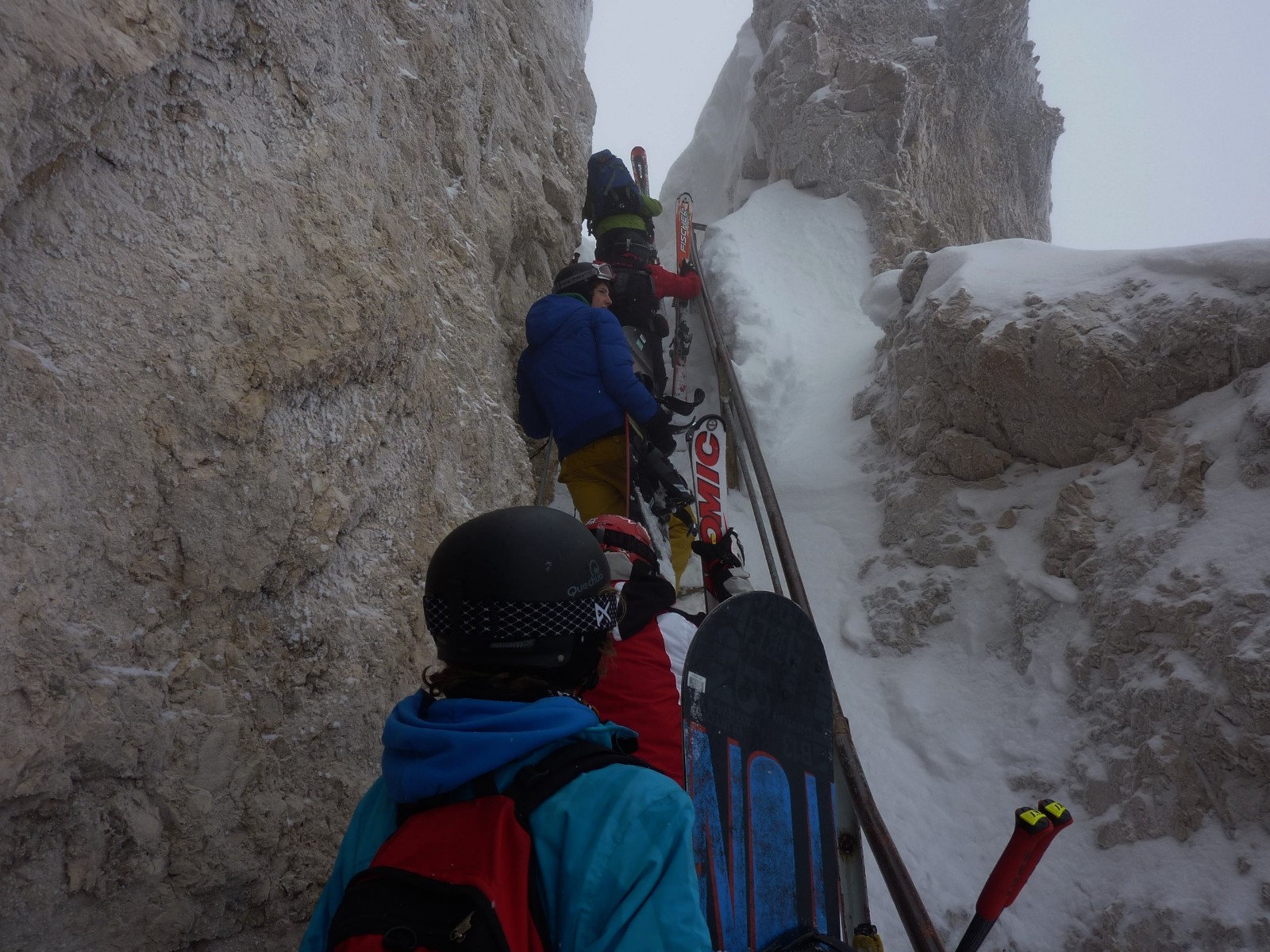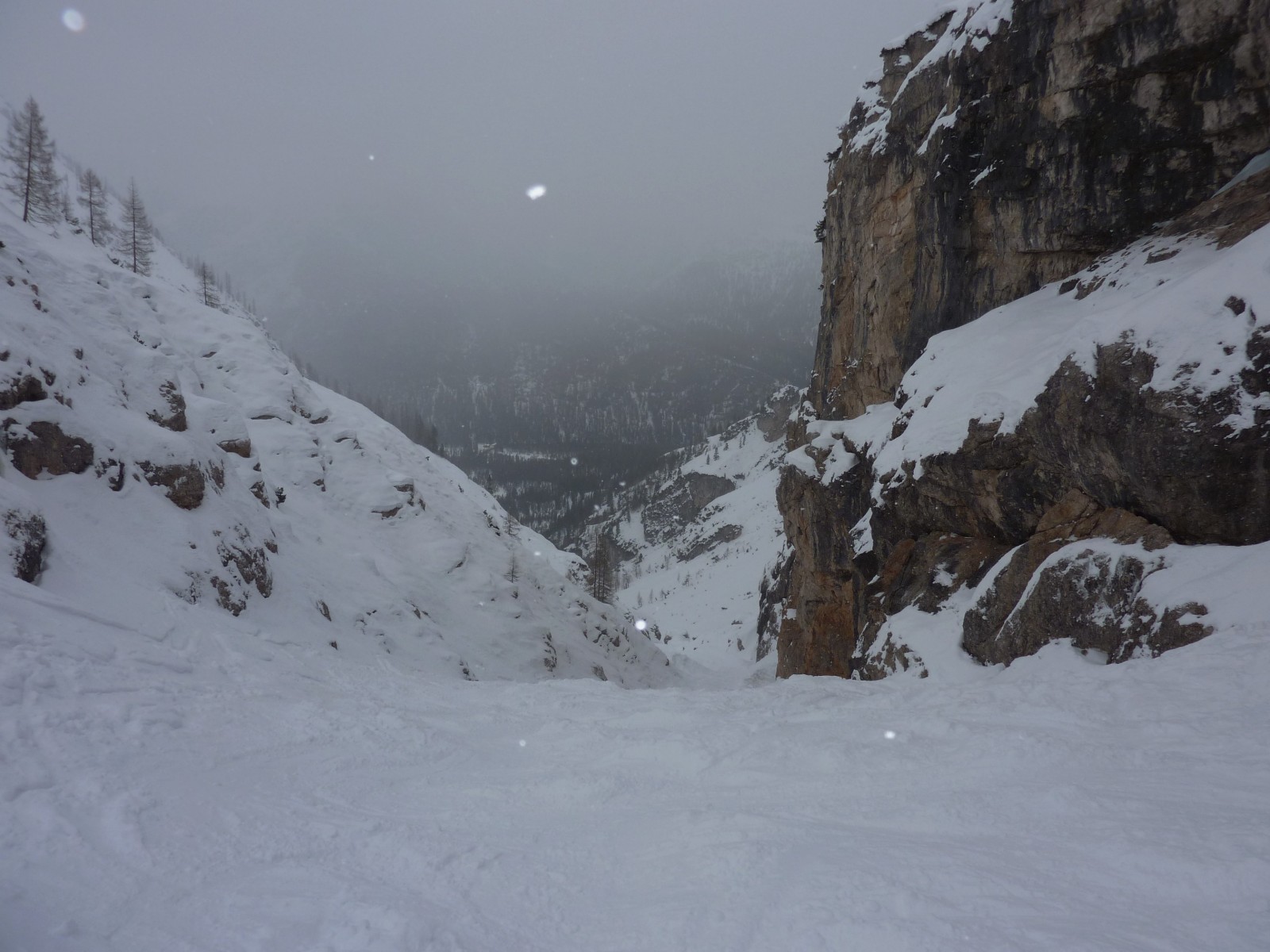 Einfache Orientierung auf der gesamten Strecke. Der Einstieg ist sehr steil! Die Abfahrt führt über einen Nordhang. Folgende Ausrüstung wird empfohlen: Produkte für alpine Sicherheit im Schnee, Freerideski und Skitourenhelm. Es empfiehlt sich die Einkehr in das Rifugio Cimabanche am Ende der Tour. Beste Jahreszeit: Januar bis April. Uns erwarten kurze Stücke mit bis zu 45° Hangneigung.