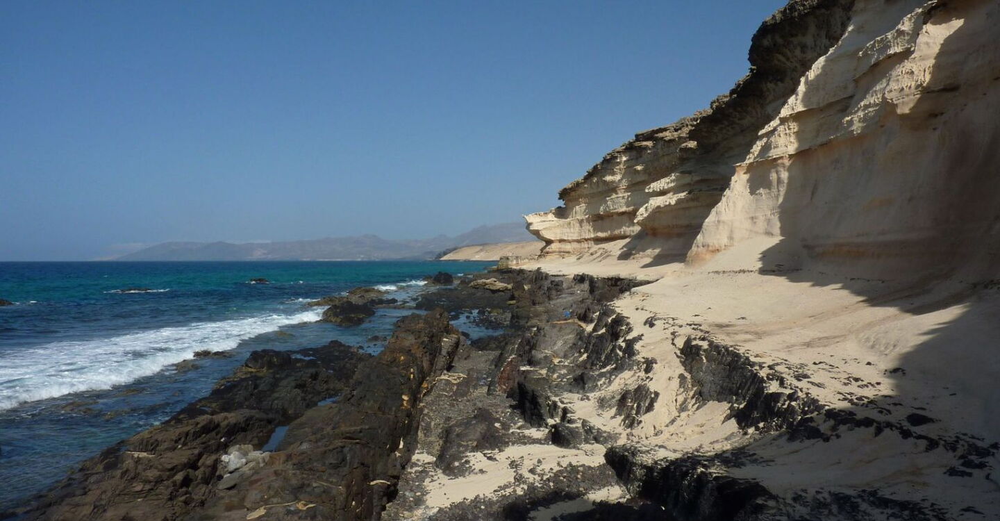 Eine extrem beeindruckende Wanderung durch das Naturschutzgebiet Jandia, die stark an die Durchquerung einer Wüste erinnert. Dabei läuft man auf dem Hinweg immer entlang der schmalsten Stelle von Fuerteventura, die hier nur einen Durchmesser von 4,5 km hat. Steigt man zwischen den Klippen zur Westküste herunter, so lässt sich miterleben, wie die gewaltigen, meterhohen Wellen mit tosendem Lärm an die Küste prallen – ein Erlebnis, das wir niemals vergessen werden. Auch die vom starken Passatwind geformten Sandsteinobjekte bieten unzählige Fotomotive. Ein besonders kraftvoller Ort – die Westküste von Fuerteventura.