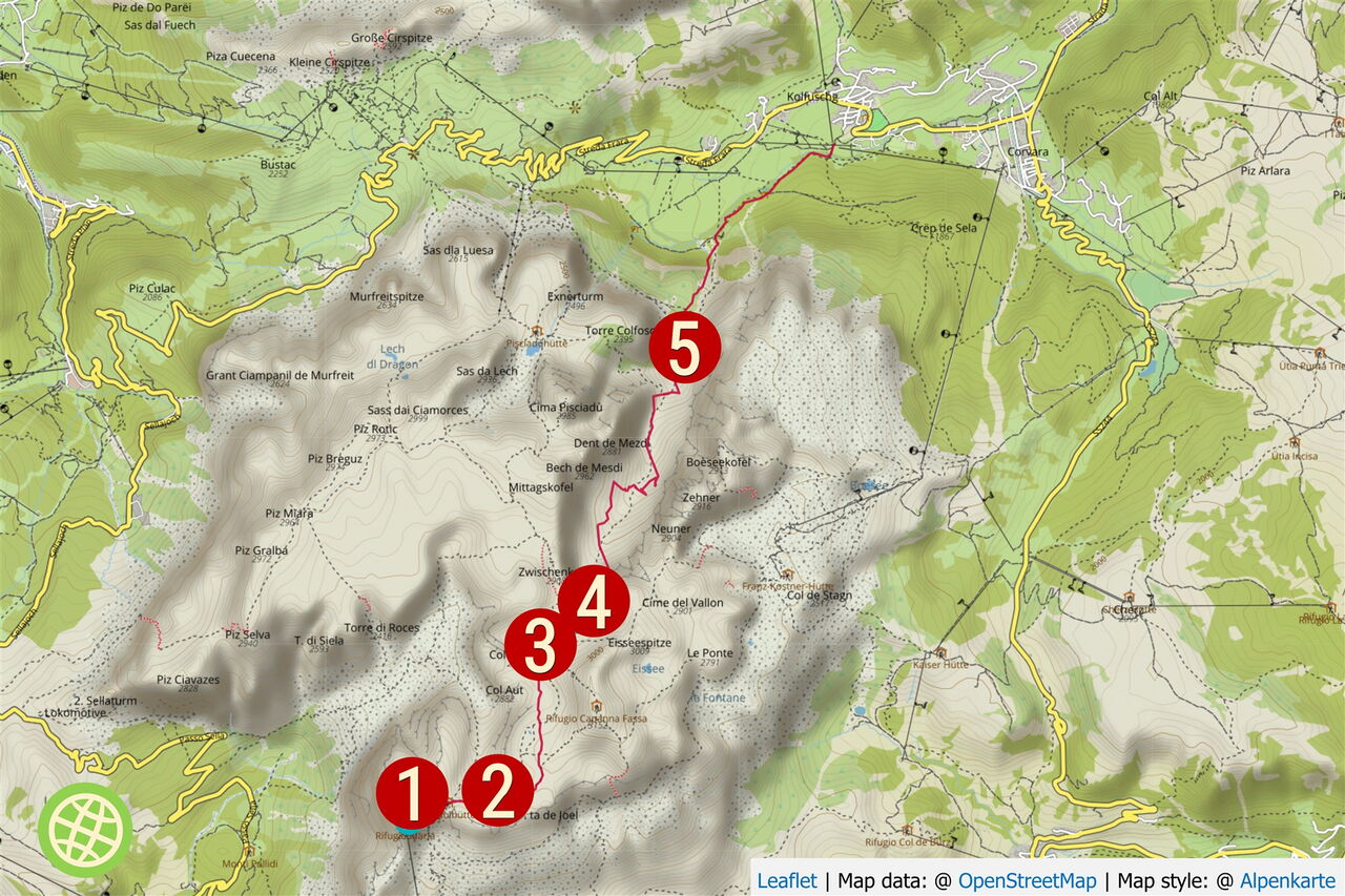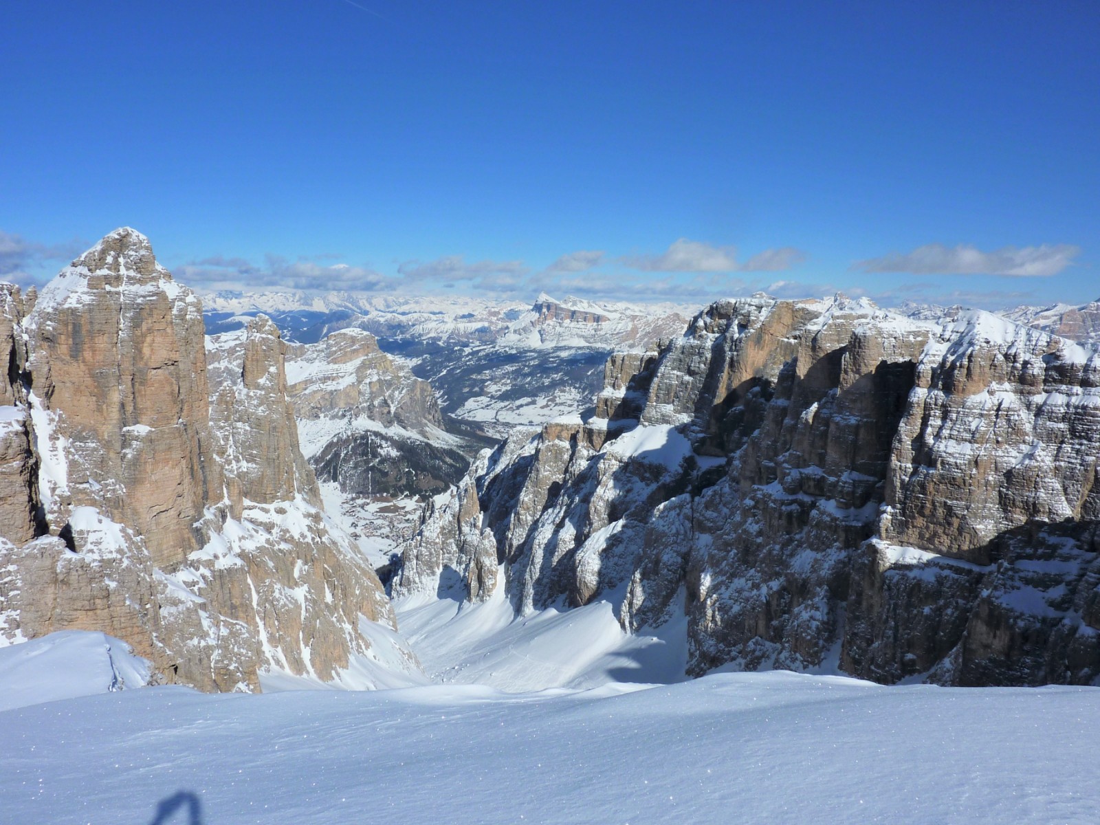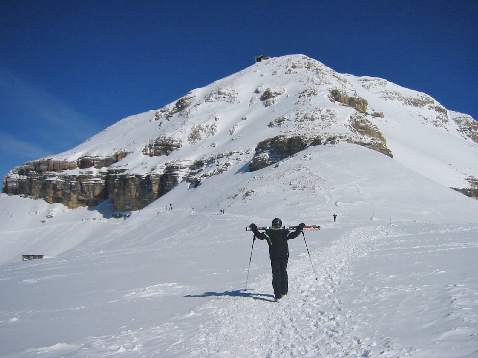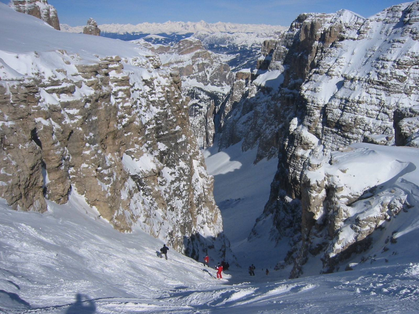 Wenn noch keine Spur vorhanden ist, ist die Orientierung nicht einfach, aber mithilfe des GPS-Tracks gut machbar. Die Abfahrt führt über einen Nordosthang. Folgende Ausrüstung wird empfohlen: Produkte für alpine Sicherheit im Schnee, Tourenski und Skitourenhelm. Es empfiehlt sich die Einkehr in das Rifugio Maria bei der Bergstation, welches nach Maria Piaz, der Pionierin des Tourismus am Pordoipass, benannt wurde. Beste Jahreszeit: Januar bis April. Uns erwarten kurze Stücke mit bis zu 35° Hangneigung.