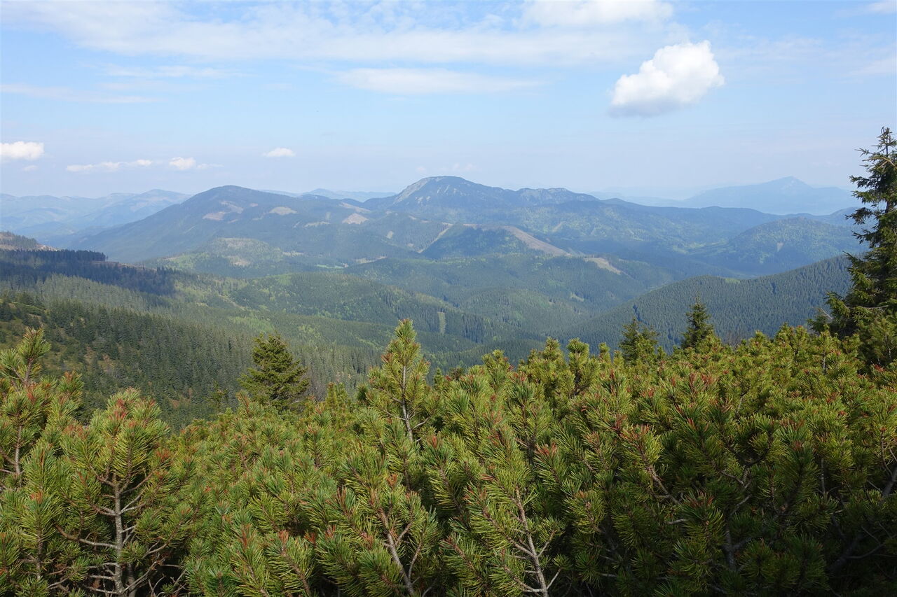 Nach weiteren und nicht erklärungsbedürftigen 7,2 km erreichen wir den 04 Latiborská hoľa (1634 m) – ein schöner Aussichtsberg. Nach noch einmal 900 m besteht die Möglichkeit eines Notabstiegs zur Chata Magurka. Siehe dazu die Tourbeschreibung 19 ab Wegpunkt 04. Wieder aufsteigen könnte man auch nach der Tourbeschreibung 19, nun ab Wegpunkt 01.