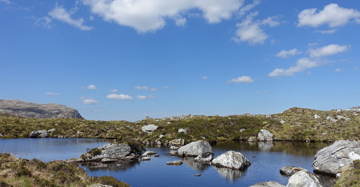 Diese Wanderung führt in die spektakulären Berge von Assynt. Es geht vorbei an idyllisch gelegenen Seen und rauschenden Bächen sowie durch 1700–3000 Millionen Jahre altes Lewisiangestein bis zu einem perfekten Aussichtspunkt auf den höchsten Wasserfall Großbritanniens – man sieht die kompletten 200 m Fallhöhe. Danach wird ein Corbett auf einer aussichtsreichen Runde bestiegen. Der Abstieg erfolgt durch eine traumhaft schöne Landschaft, Garant für perfekte Erholung.