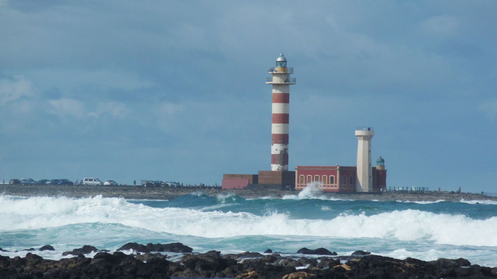 In der Ferne sehen wir den 1897 erbauten Leuchtturm El Toston. Wir umlaufen weiträumig die Caleta del Marrajo, um nach weiteren 80 m, rechts über die Zufahrtsstraße zum Leuchtturm, direkt auf eine alte Zisterne zuzugehen und dort unseren Weg entlang der Küste – nun in östliche Richtung – fortzusetzen. Wir gehen auf der Piste oder schmalen Pfaden entlang des Küstenstreifens und erreichen die (02) Playa Aguda & Playa Maria Diaz (18 m).