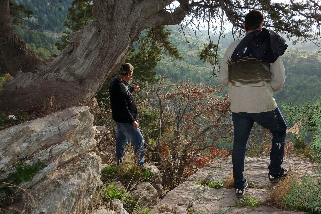 Vater und Sohn Kiriakos, die Besitzer des familiengeführten Hotels Attaviros, haben in Zusammenarbeit mit dem Autor diese historische Wanderung ausgearbeitet. Sie beruht auf Erinnerungen des Seniors Kiriakos, der schon als Kind die Wege nutzte, um Schafe und Ziegen auf die Felder zu bringen. Mit großer Freude hat er eine Unmenge von Detailinformationen vermittelt, war aber auch sehr stolz und berührt, diesen Weg seinem Sohn – der ihn noch nie gegangen war – zu zeigen. Eine erste Begehung endete mit dem Sammeln von Kräutern und Salat, die dann nach der Wanderung zu einem köstlichen Mahl mit Suma zubereitet wurden. Zur weiteren Recherche wurde auch Kartenmaterial von 1929 – aus der Besatzungszeit der Italiener – herangezogen, um die Pfade und Wege zu bestimmen. Das Ergebnis: Vom wunderschönen Bergdorf Embona – der Weinhauptstadt von Rhodos – führt nun die Wanderung entlang der nördlichen Hänge des höchsten Berges der Insel, vorbei an den Naturschönheiten von Embona. Durch die Höhenlage der Wanderung findet man in den heißen Sommermonaten ein sehr gemäßigtes Klima vor.
