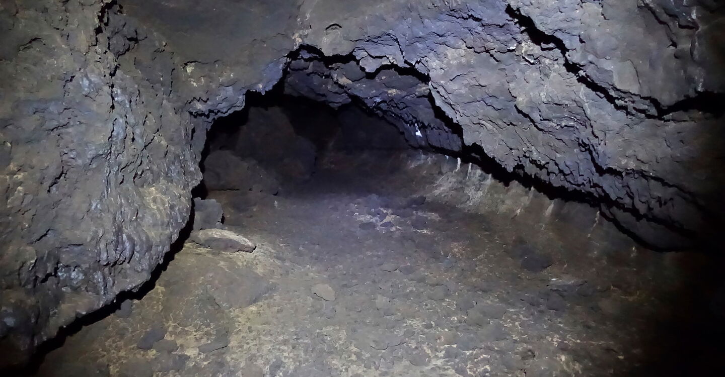 Ein solcher Lavatunnel entsteht, wenn flüssiges Magma für längere Zeit sehr gleichmäßig innerhalb eines Lavastroms fließt. Dabei bildet sich zunächst ein Lavakanal, an dessen Oberfläche das Material langsam abkühlt, wodurch sich eine Decke ausbildet. Unterhalb der Tunneldecke kann die Lava aber weiterhin fließen, da sie von der kühleren Luft isoliert ist und für längere Zeit ihre hohe Temperatur hält. Erlischt die Förderung, so fließt das Material noch aus der Röhre heraus; was bleibt, ist der Lavatunnel. Während der Expedition durch die Höhle ist die Tunneldecke an einigen Stellen eingebrochen und es sind Öffnungen entstanden, sogenannte Skylights. Schlussendlich erreichen wir den (02) Ausgang der Cueva del Faro (100 m), auf einem Pfad laufen wir bis zur Schotterpiste.