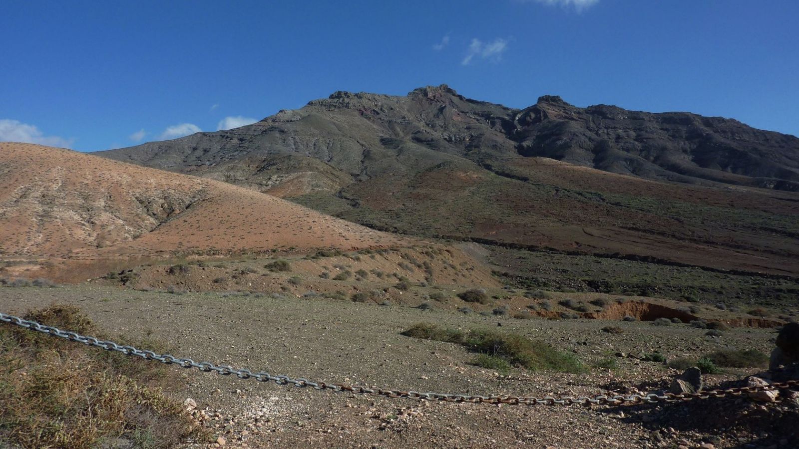Busanbindung: keine. Mit dem Pkw fährt man 17,6 km von der Costa Calma auf der FV-2 und der FV-605 Richtung Pajara. Nachdem wir La Pared hinter uns gelassen haben, befinden wir uns nach einigen Kurven auf einer lang ansteigenden Geraden. Schon bald sehen wir auf der rechten Seite etwas tiefer liegend einen künstlich aufgeschütteten Staudamm. Zwischen zwei Steine gespannt, versperrt dort eine Kette eine beginnende Schotterpiste. Nicht ganz einfach, aber entlang der Kette kann man das Auto parken. Geokoordinaten Parkplatz: 28.272329 -14.171220.