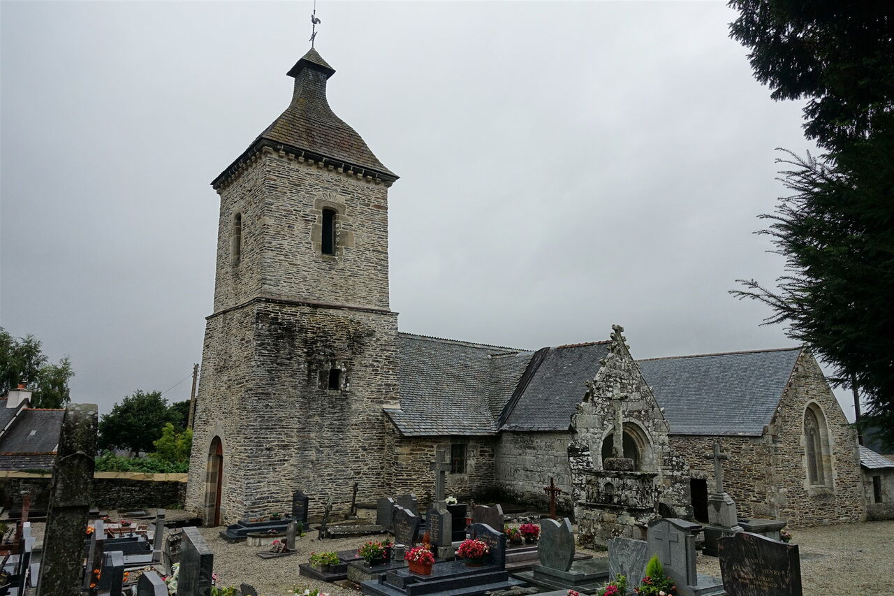 Sobald der Weg durch umgestürzte Bäume versperrt ist, gehen wir links über den Bachlauf weiter, bis der leicht ansteigende Pfad in eine asphaltierte Straße mündet, auf der wir weiter bergauf gehen. An der darauffolgenden Straßenkreuzung gehen wir geradeaus, auch ausgeschildert in Richtung der im 16. Jahrhundert gebauten 04 Chapelle de Rosquelfen (194 m). Diese lassen wir auf der rechten Seite liegen und gehen auf der weiterführenden Straße bis zur darauffolgenden Weggabelung und dort halb rechts. Die Straße mündet in eine Weitere, auf der wir weiter bergab gehen.