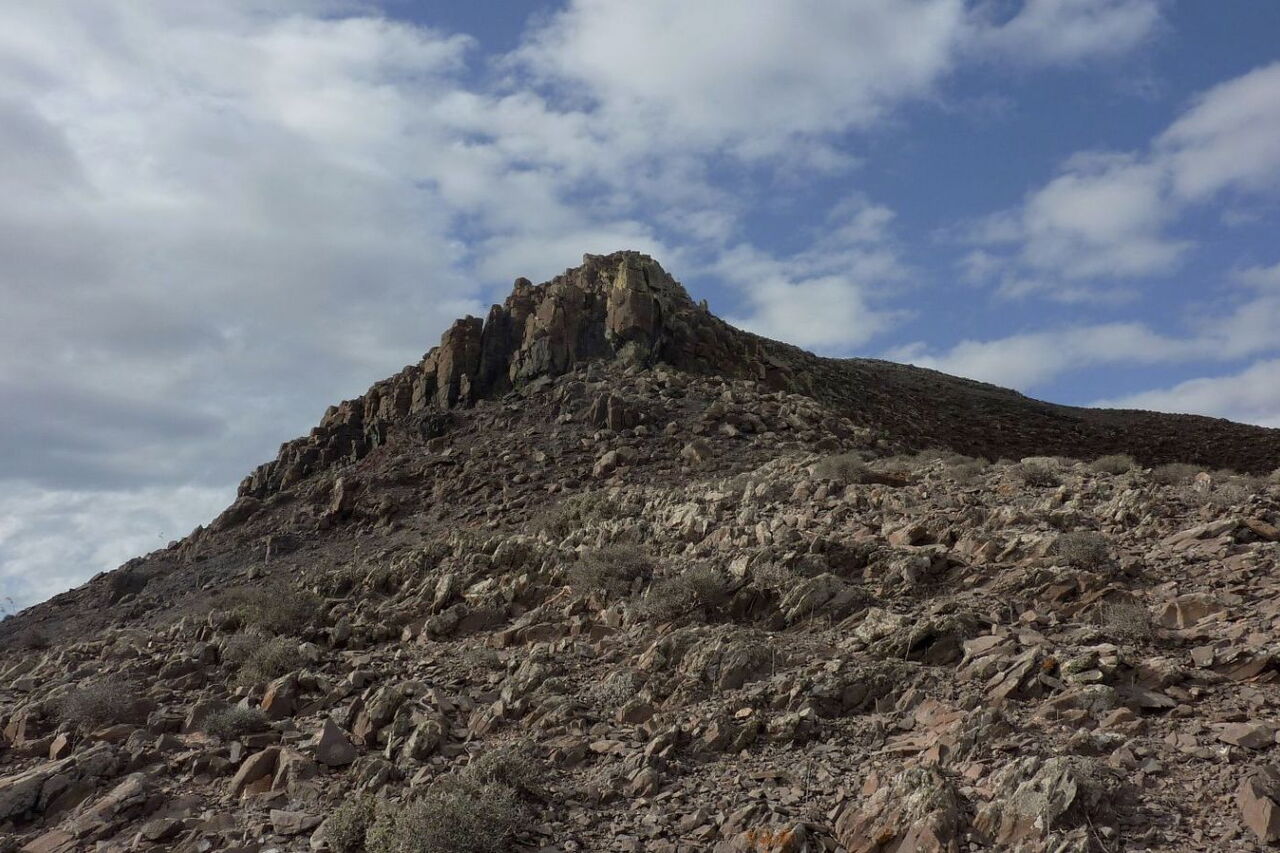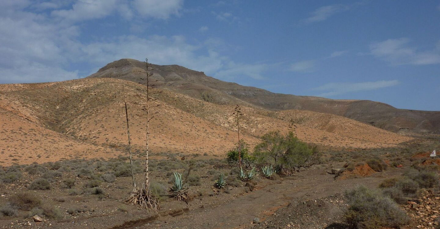 Der Startpunkt unserer Wanderung befindet sich in dem kleinen und verschlafenen Dorf Cardon in der Gemeinde Pájara. Der Ackerbau ist in dieser Region immer noch stark verbreitet. So führt der Weg vorbei an traditionellen Entwässerungsgräben, wo mithilfe von Erdwellen das Regenwasser gestaut wird. Kurz vor dem Gipfel kommt an einer kleinen Kletterstelle Nervenkitzel auf. Vom Gipfel aus ergibt sich ein beeindruckender Blick auf das Naturdenkmal Montana Cardon, den direkten Nachbarn der Gran Montana Hendida. Das Erscheinungsbild des felsigen Gebirgsmassivs ist geprägt durch seine gezackten Oberflächen, die durch Erosion entstanden sind. Nach dem Abstieg vom Gipfel führt ein bequemer Höhenweg zurück zum Ausgangspunkt.