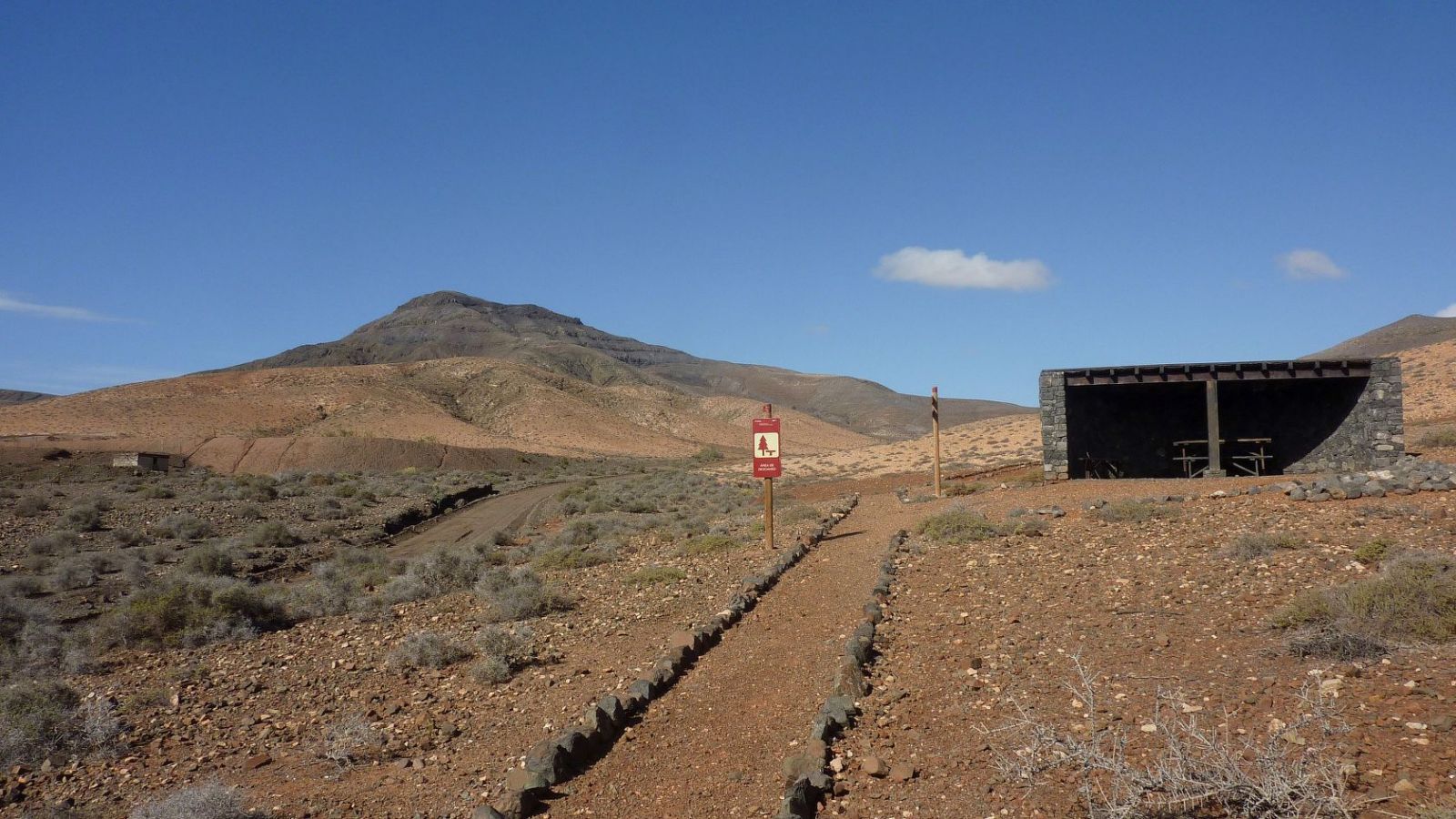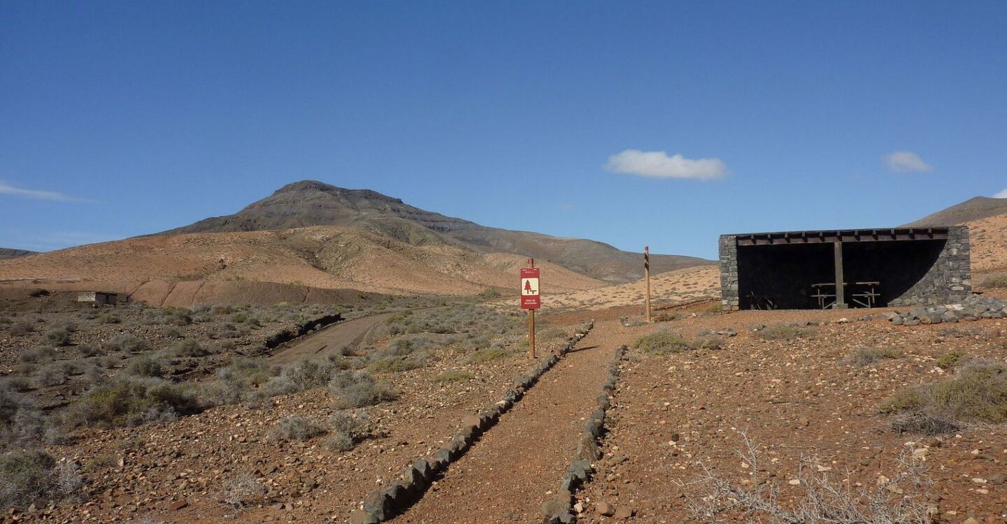 Busanbindung: Linie 11. Pkw-Anfahrt: Von der Costa Calma 16 km über die FV-56 und FV-618. Gleich nach der Ortseinfahrt von Cardon nehmen wir die dritte Einfahrt rechts, direkt durch das Barranco. Dort fahren wir weiter, bis wir auf der rechten Seite ein Picknickhaus sehen und nach 180 m bei der Weggabelung parken. Geokoordinaten Parkplatz: 28.275469 -14.135942.